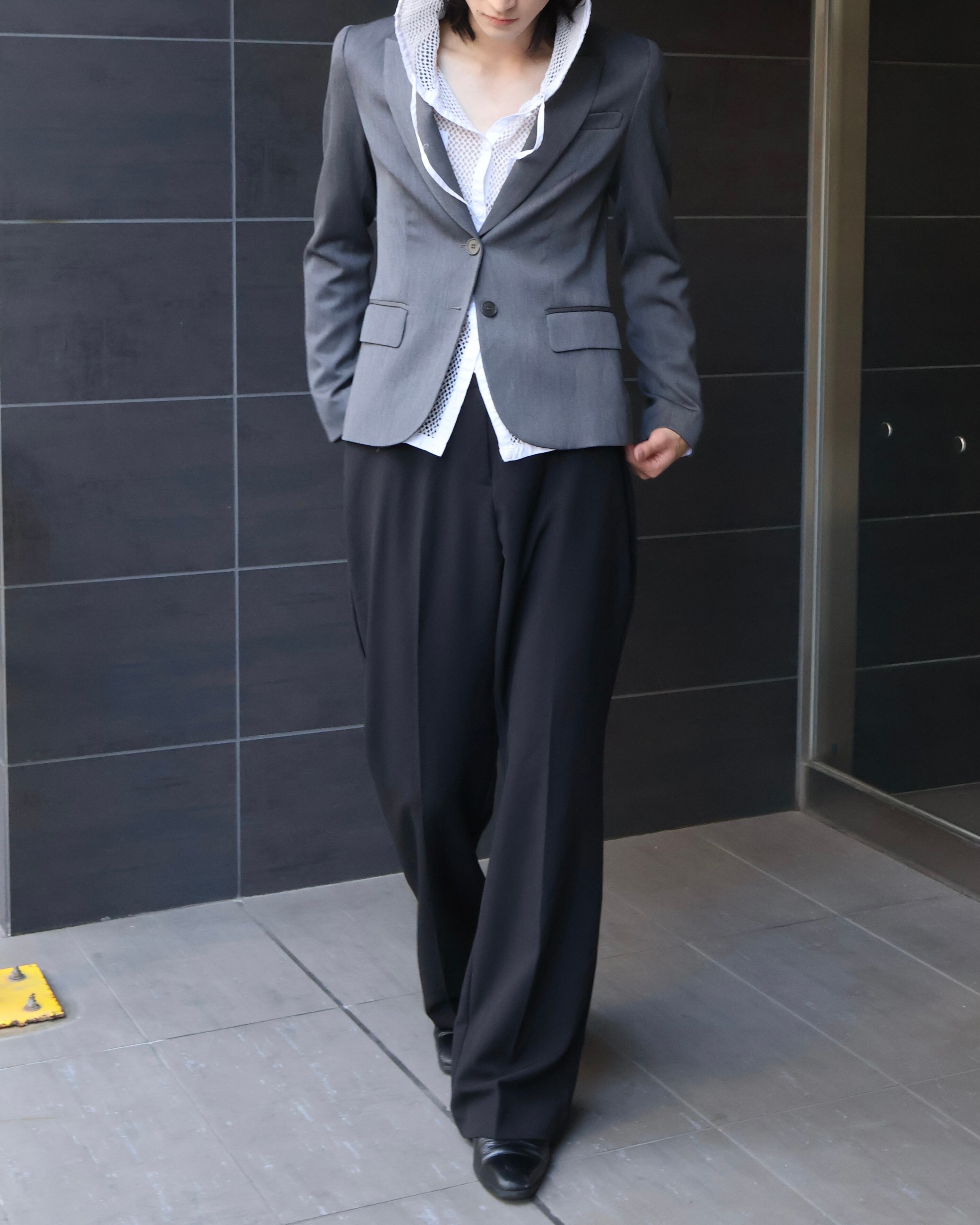 高級感のあるウール地で、肌触りもよく、サラッと着用できる1着。