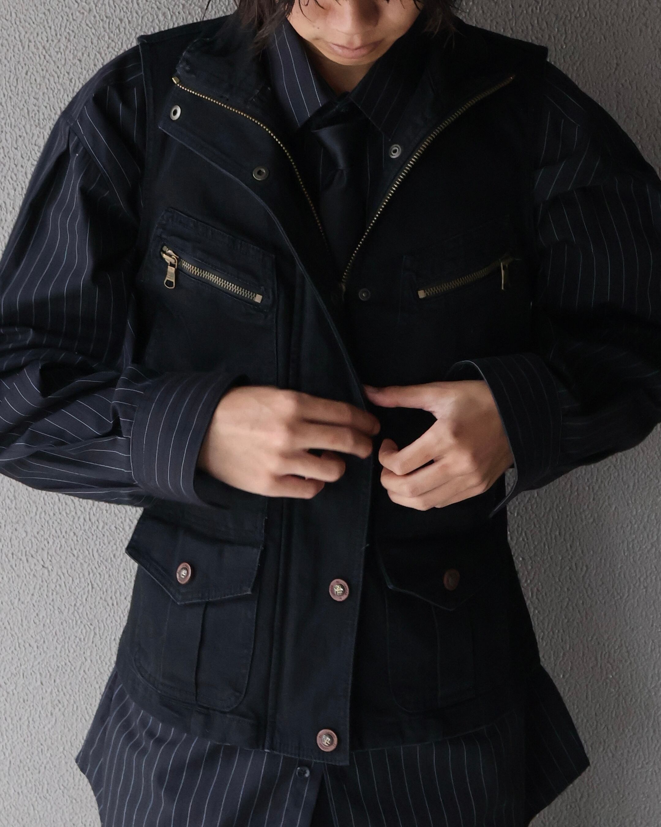 ボタンやジップの金具部分がより主張されカジュアルからモードまで幅広く着用することができるアイテム。
