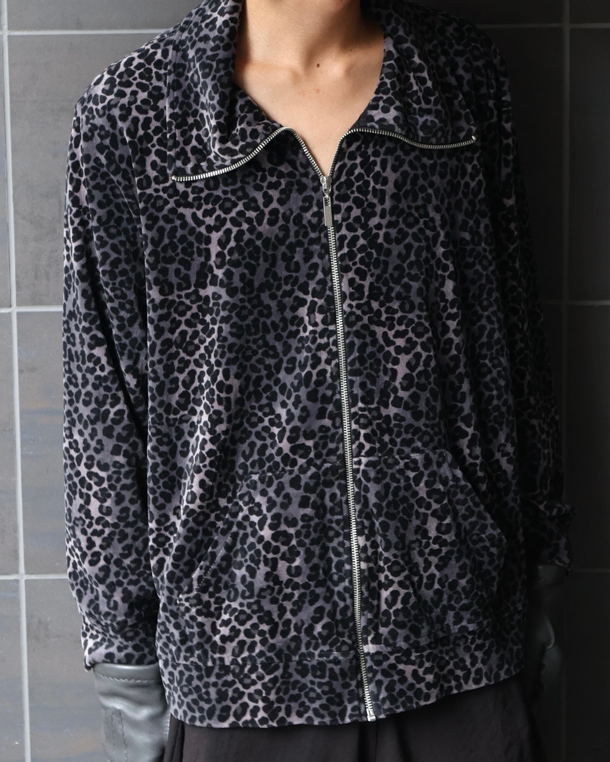 Leopard design velour zip blouson