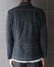 ステッチによるデザインが効いたベロアシャツ