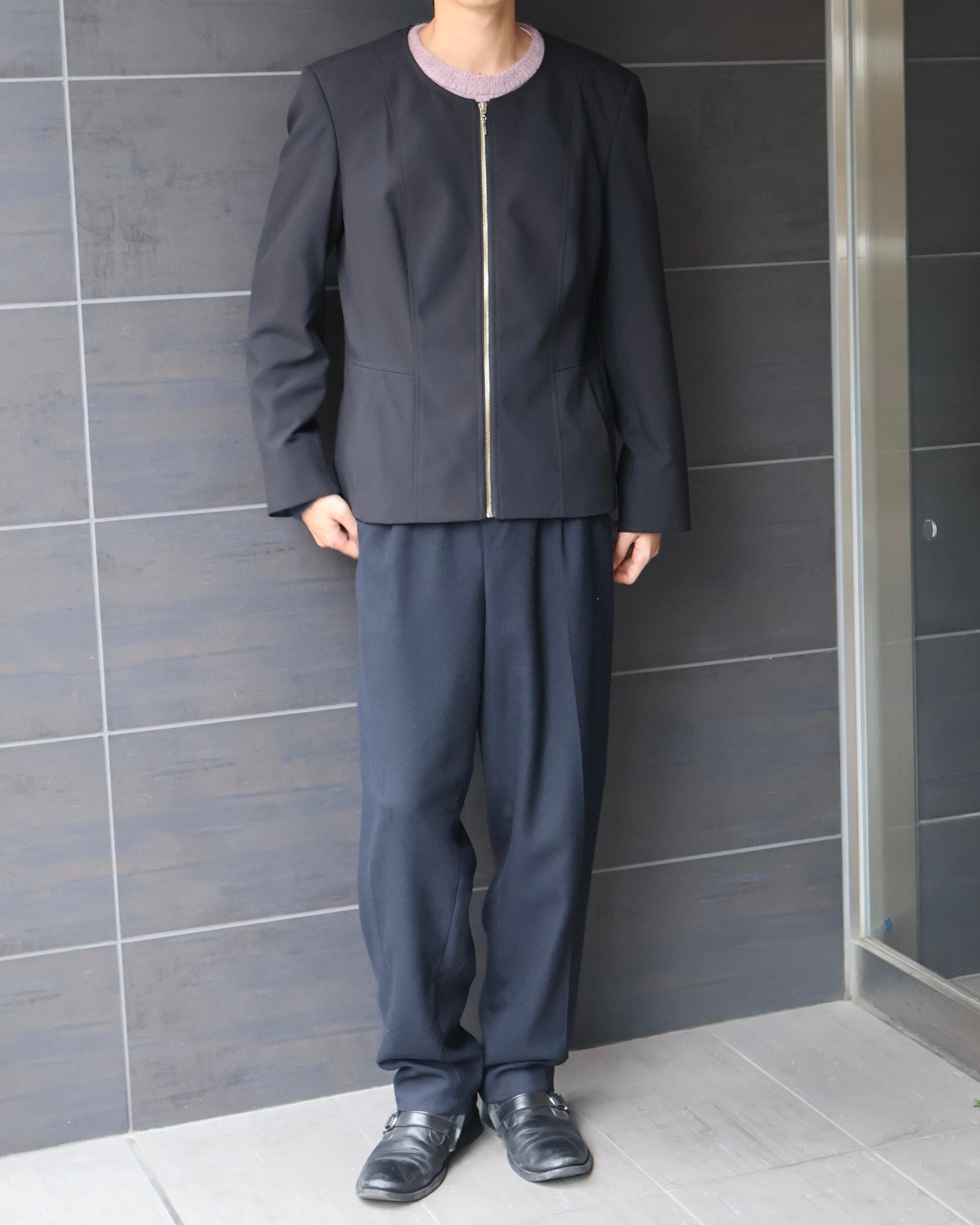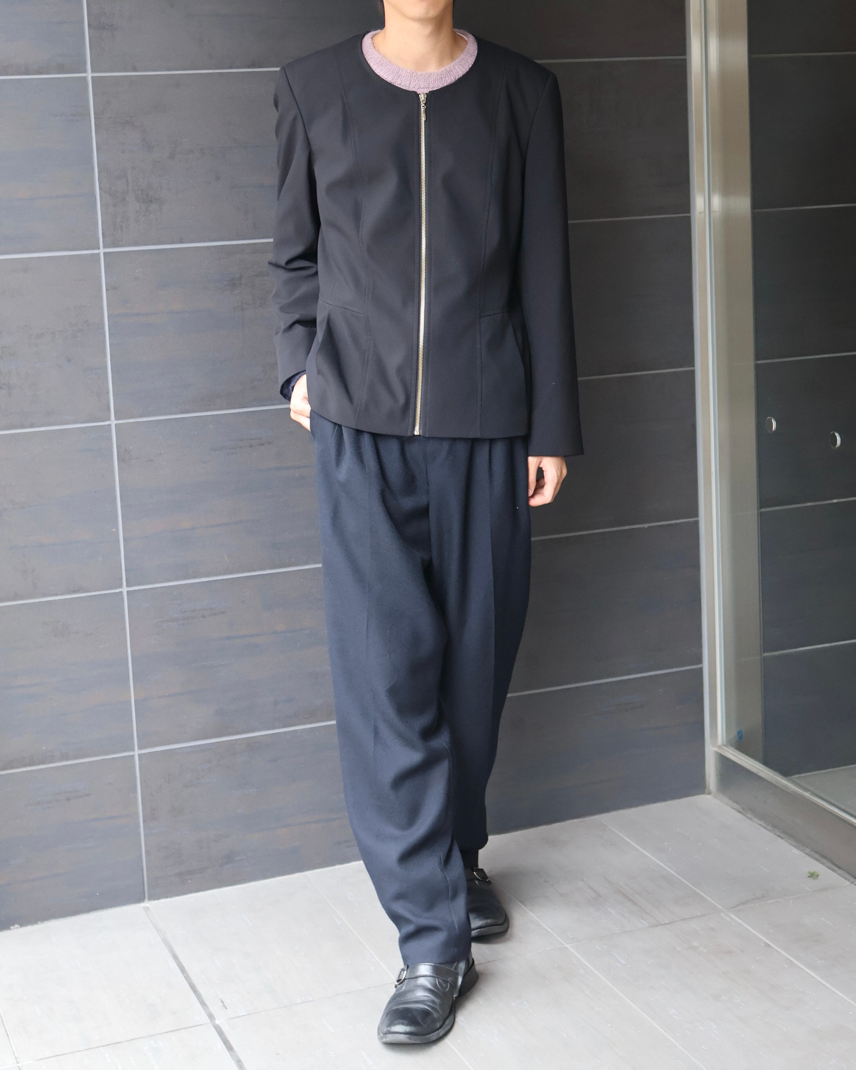 Crew neck zip-up blouson