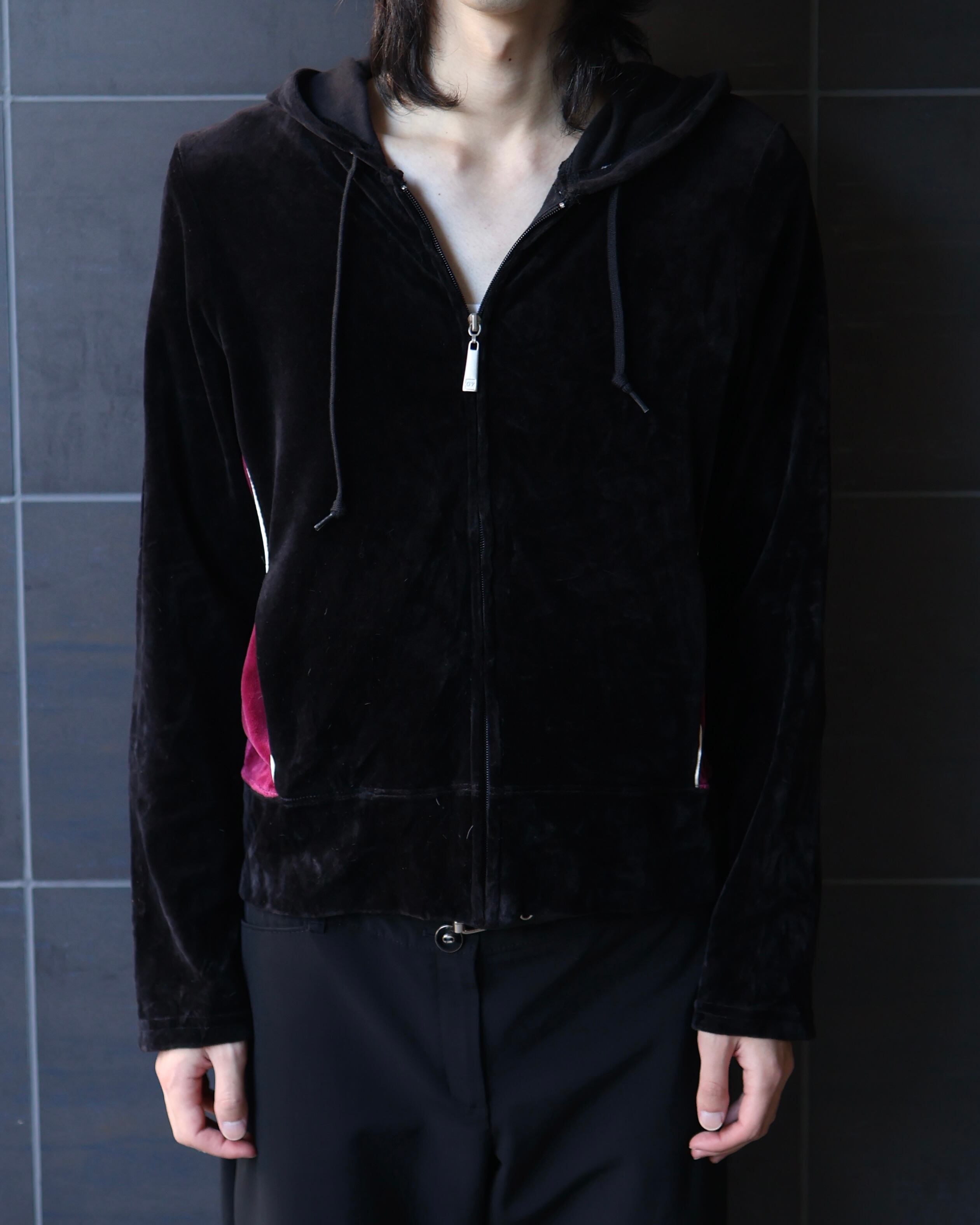バイカラーのコーデュロイ素材になっているジップフーディー。