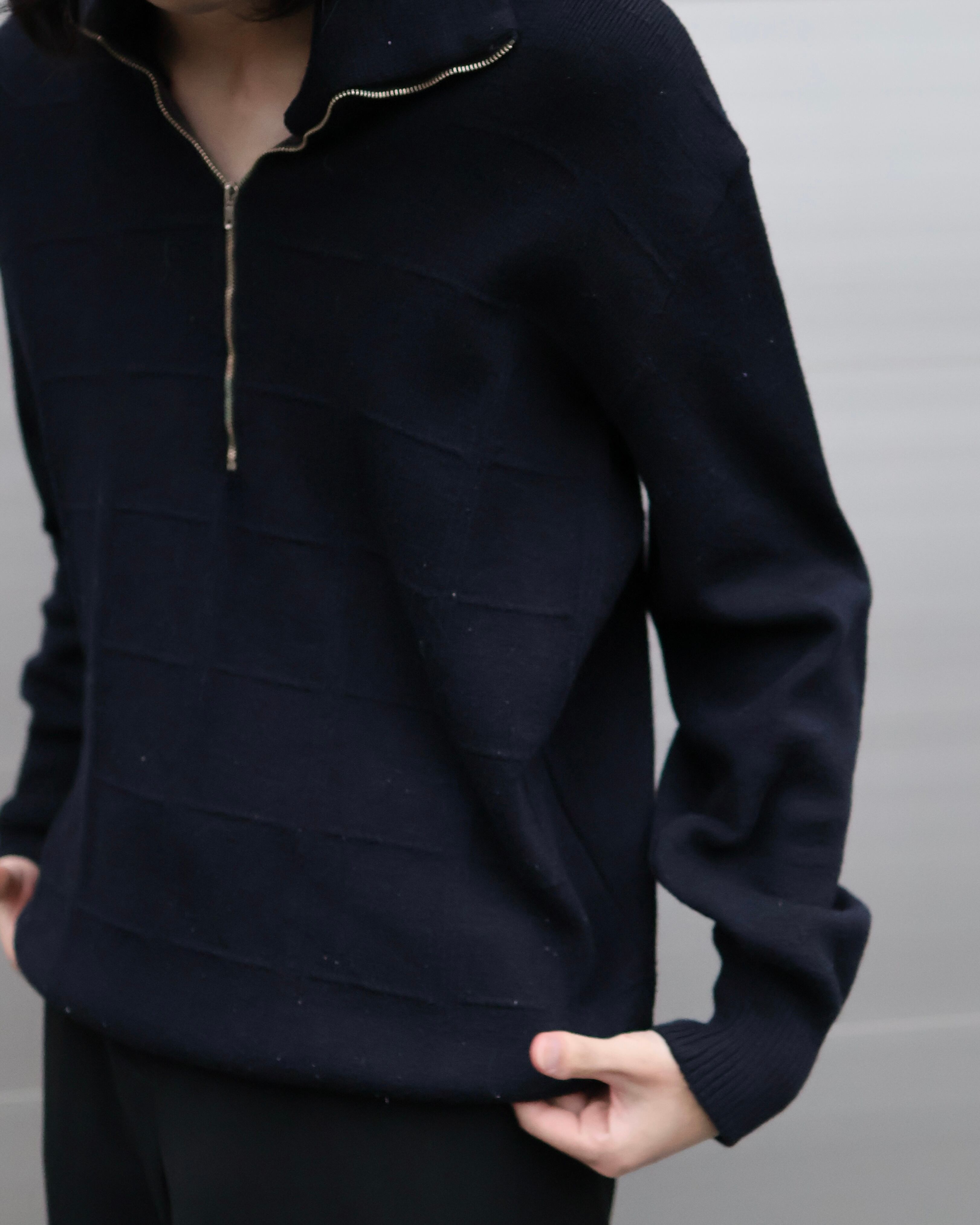 ハーフジップのニットブルゾン