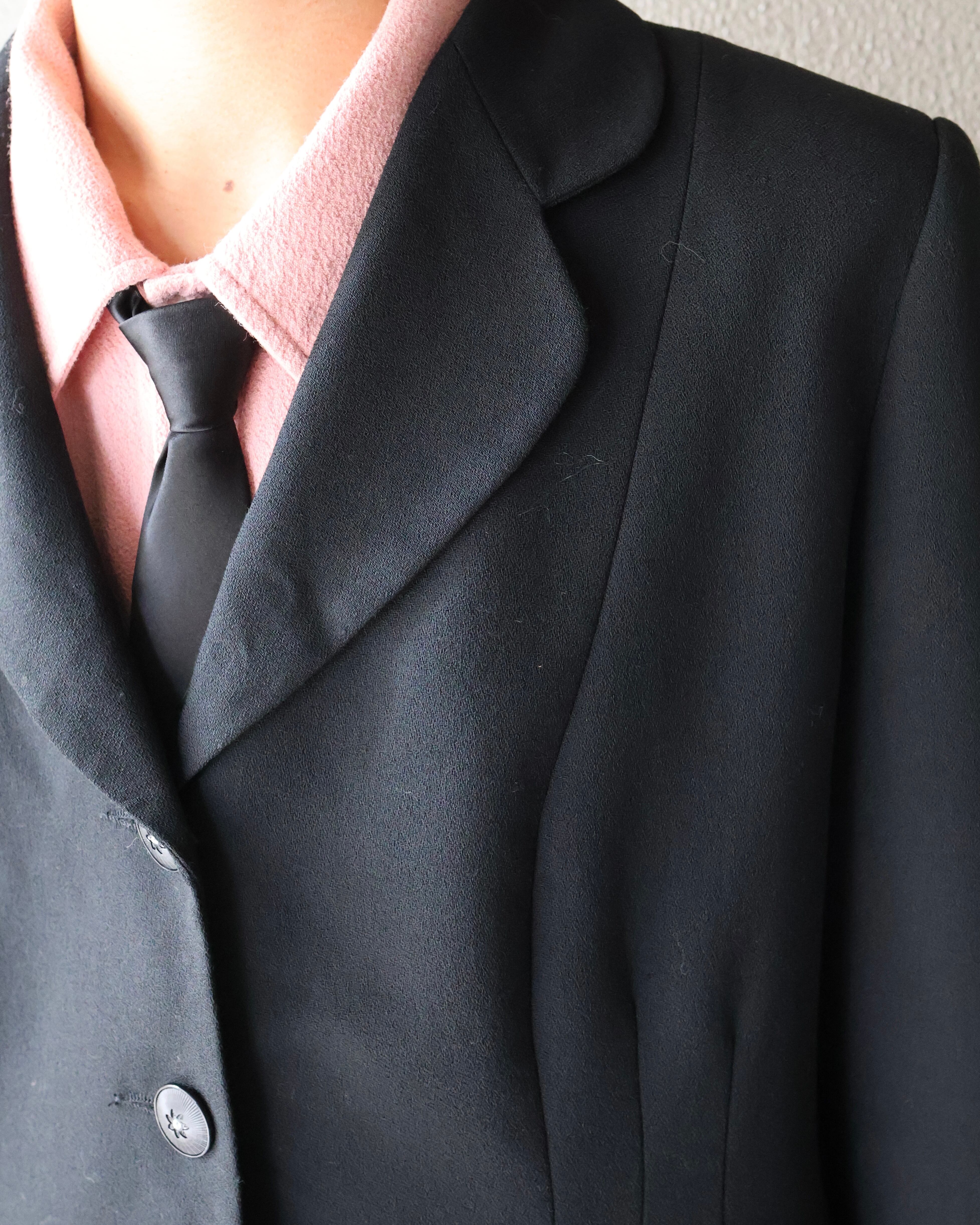 フロントディティールのレザーカッティングデザインにより他のテーラードと差別化を測ることができる。