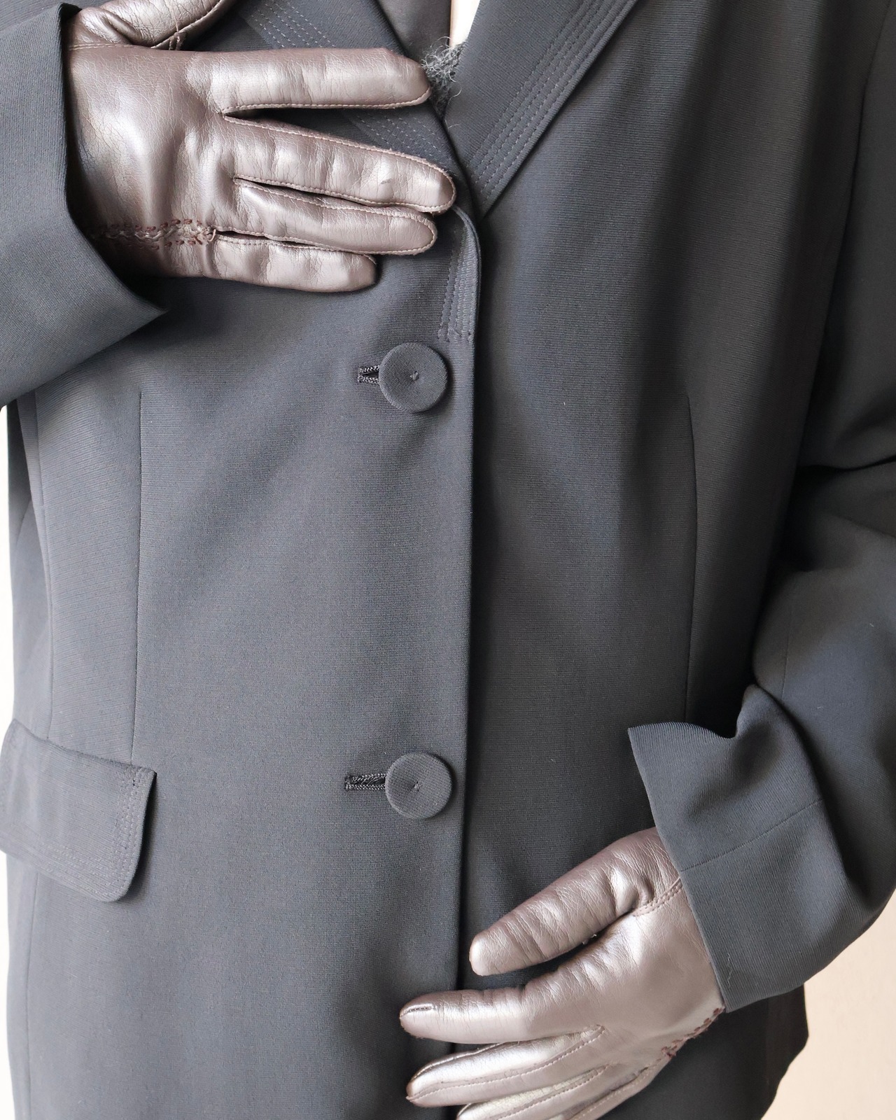 ラベル部分の落ち着いたステッチデザインにより細かいディティールが綺麗でフォーマルな印象を与えない1着。