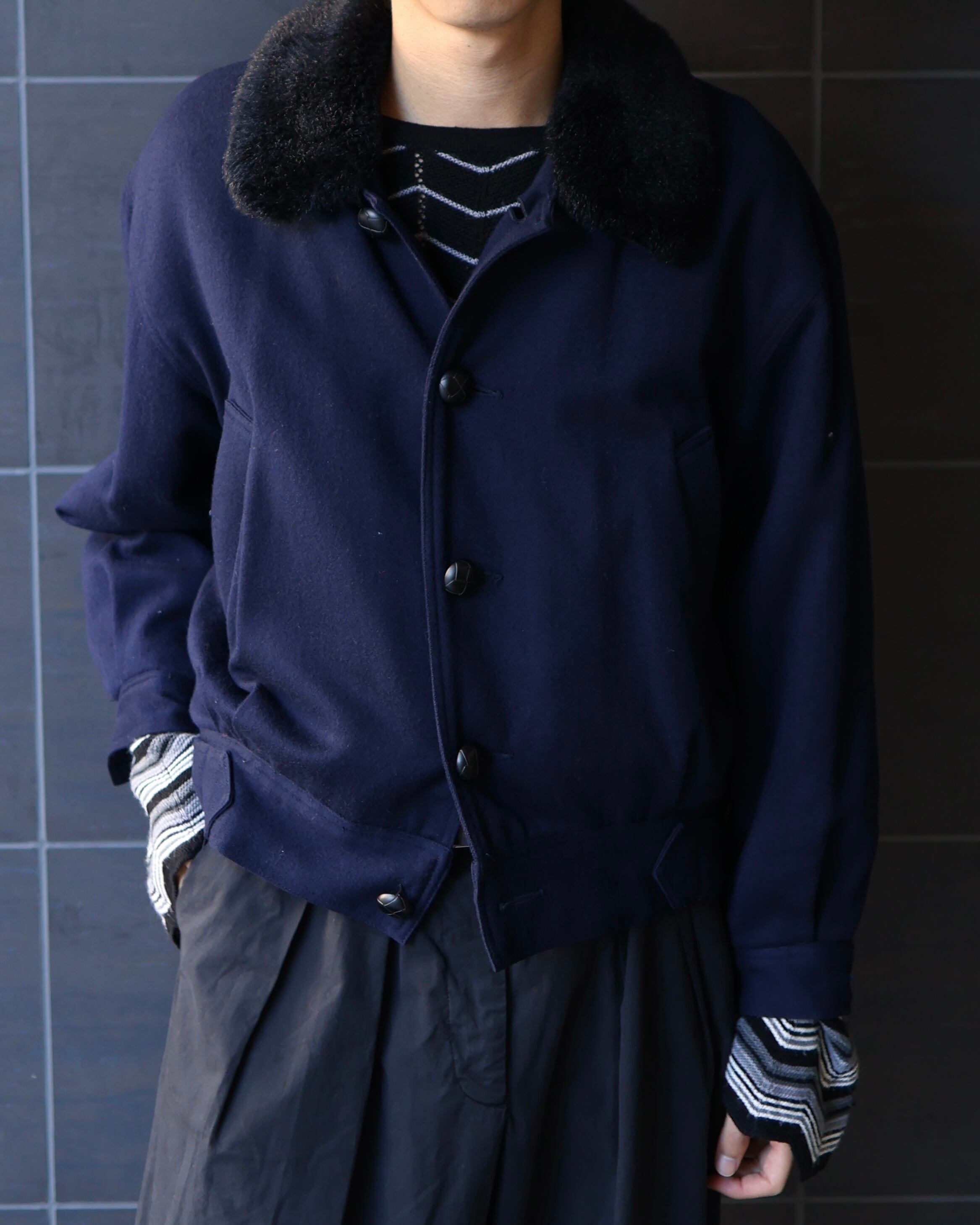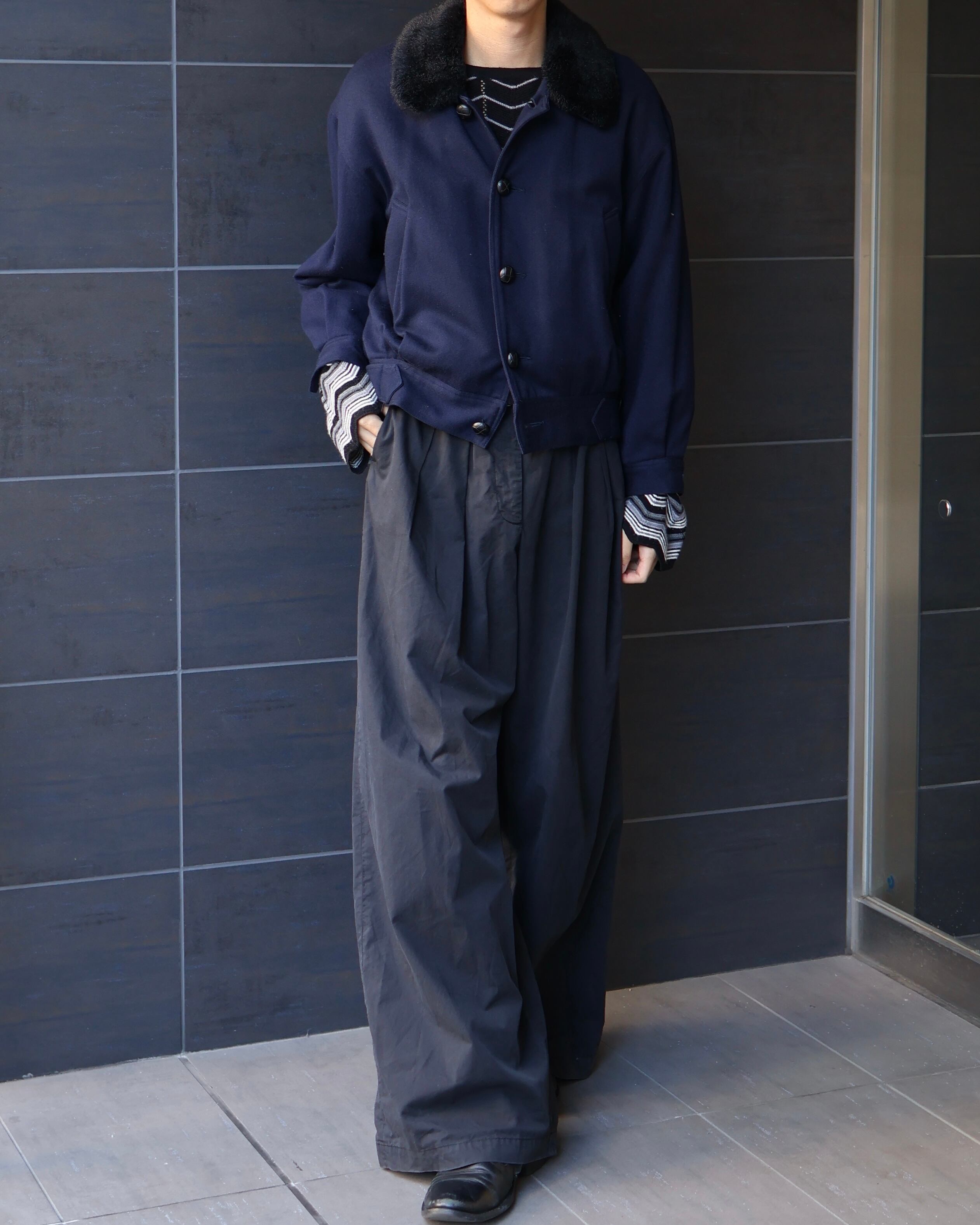 本革のボタンやファーのアクセントによりチープに見えない気品さがあり裾部分のベルトによる調節などから美しいシルエットで着用することができるアイテム。