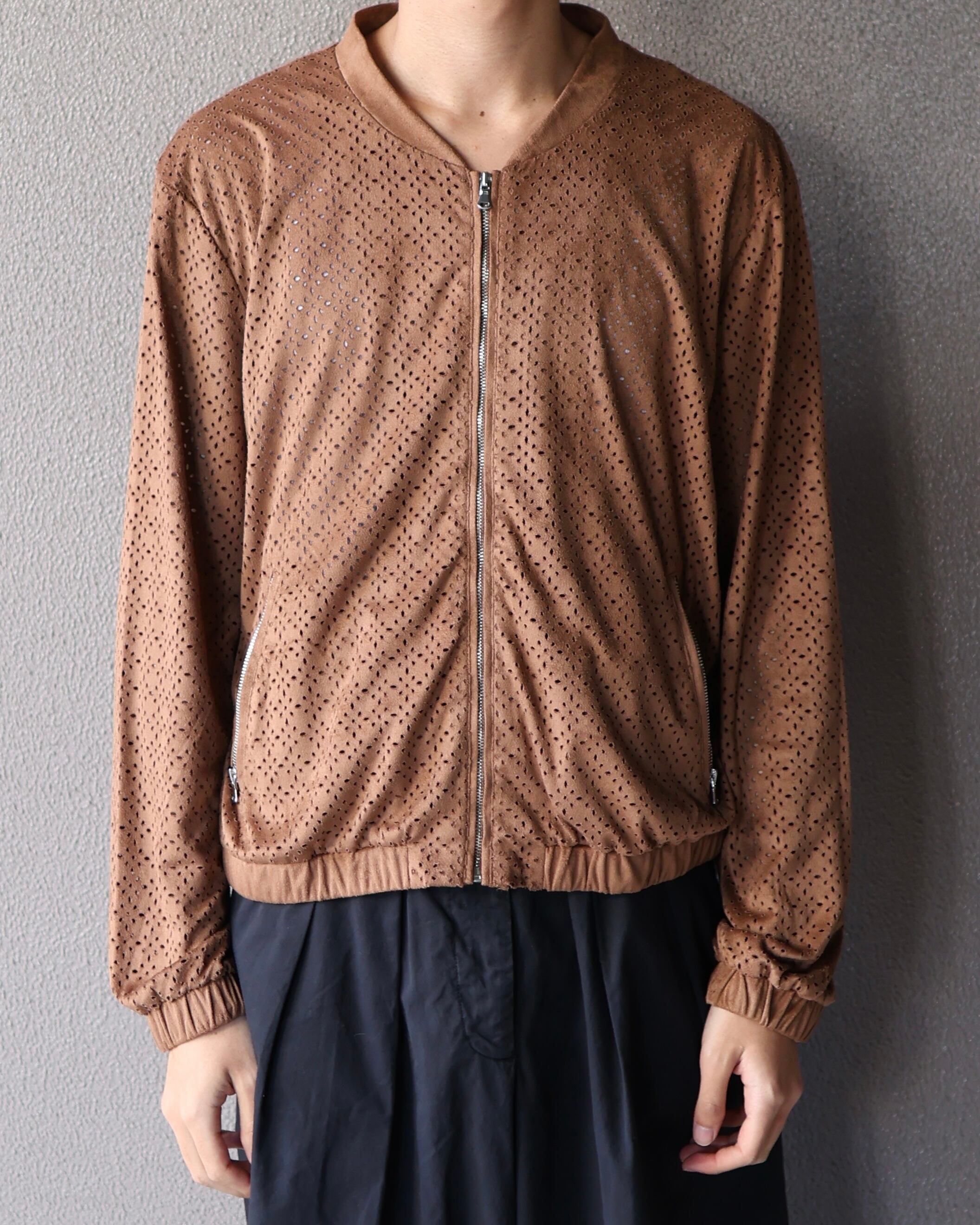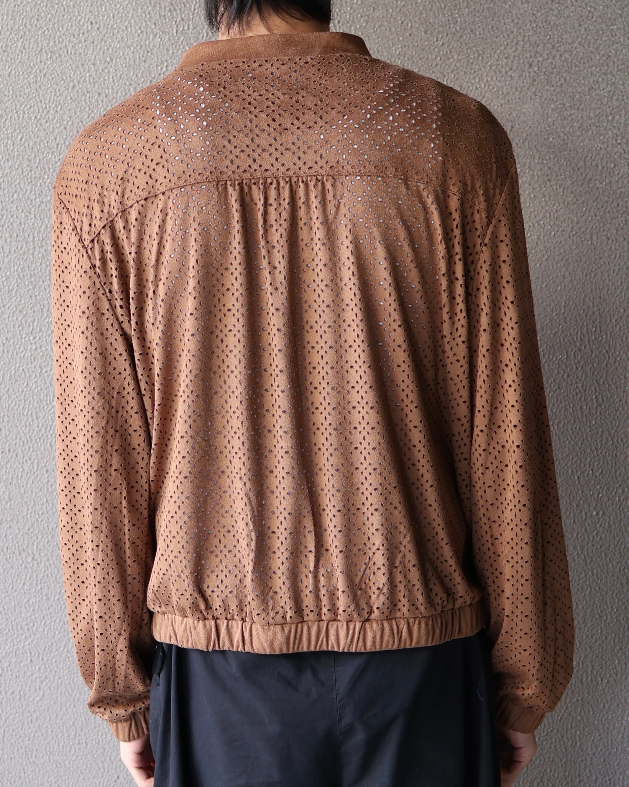 レーザーカットによるメッシュ加工が施されたジップブルゾン。