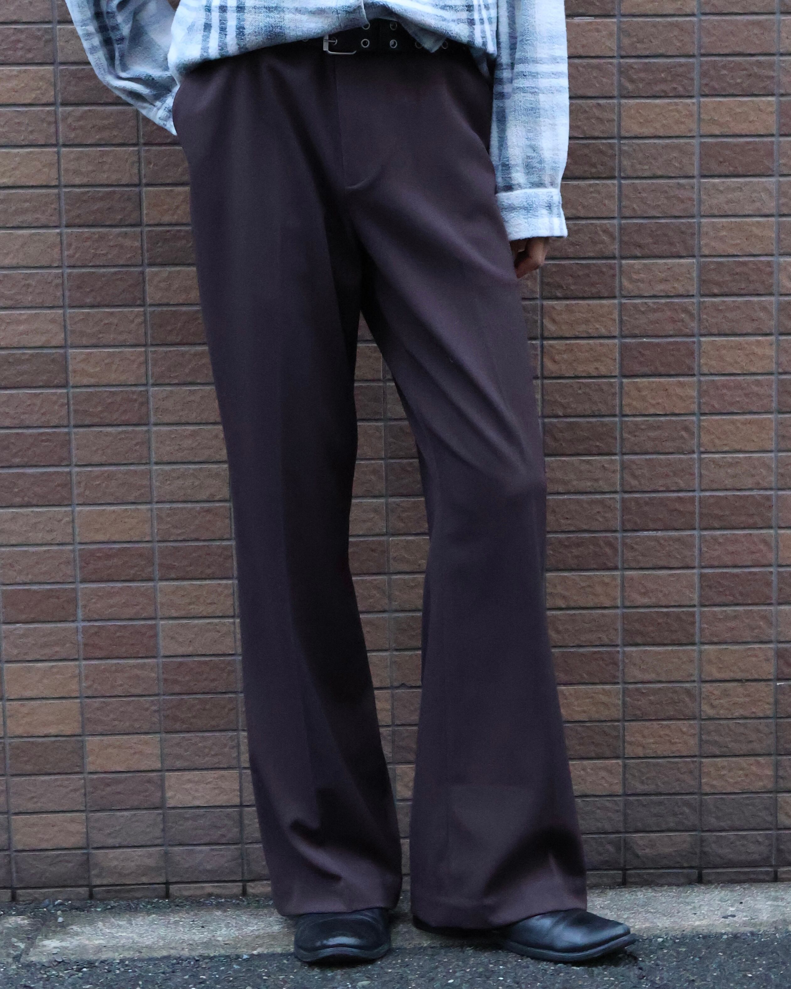 ブラウンのノータックストレートスラックス