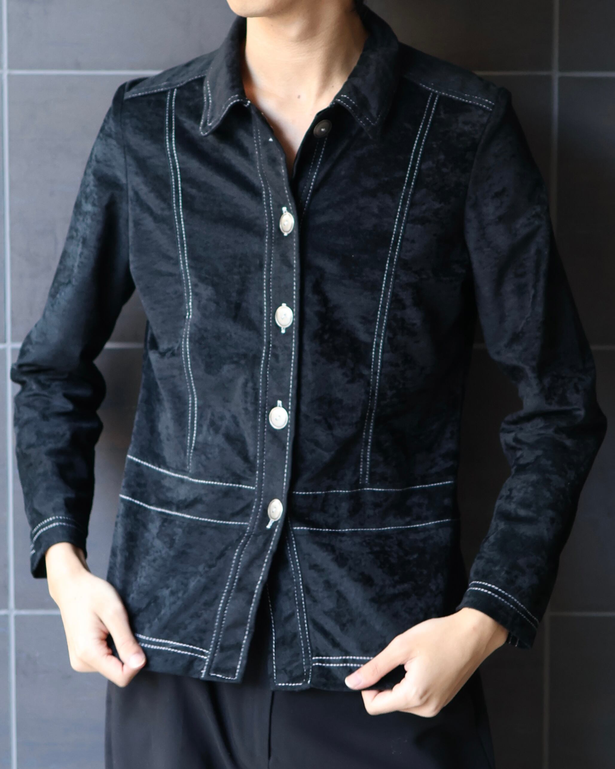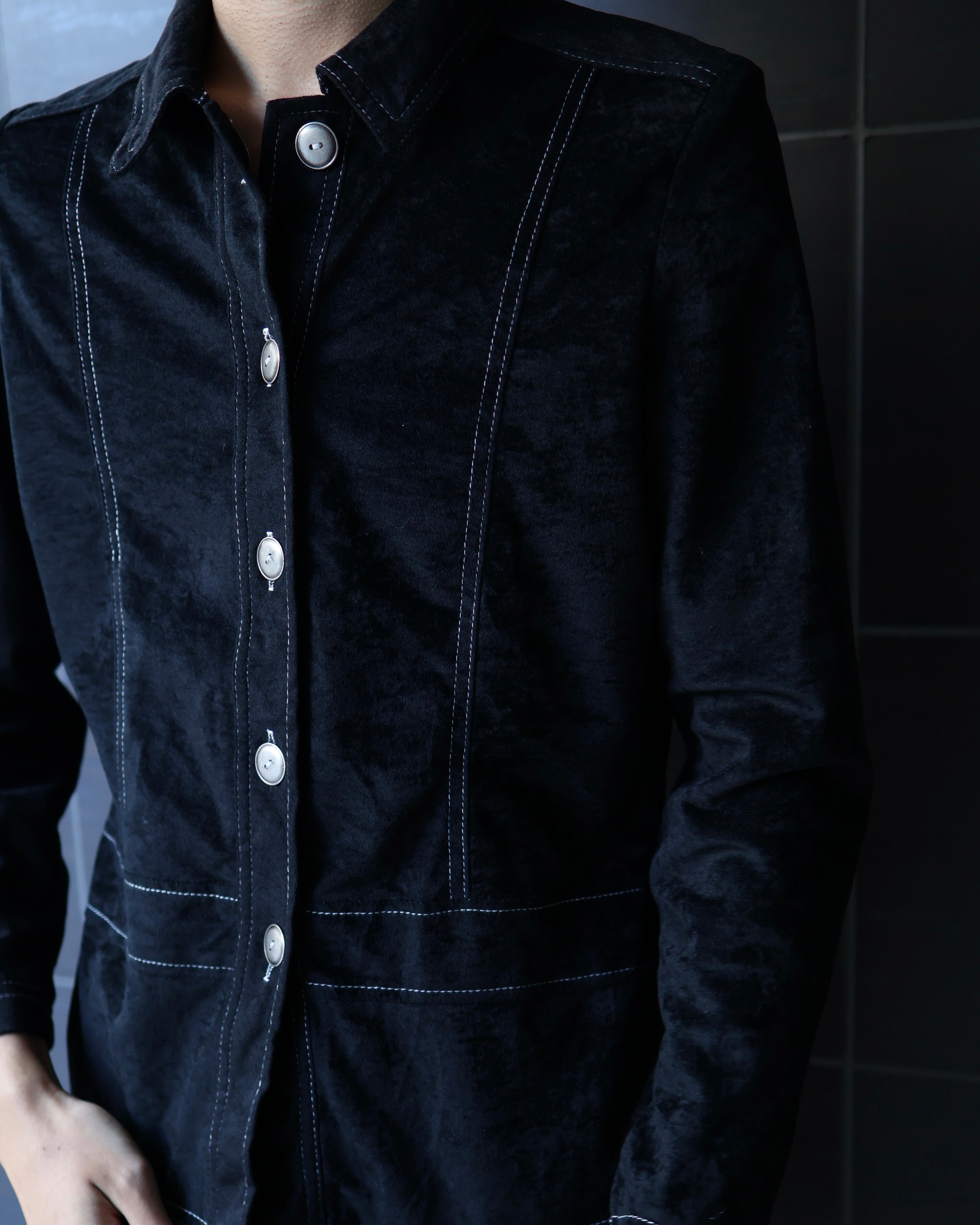スエードライクな素材感のステッチデザインシャツ