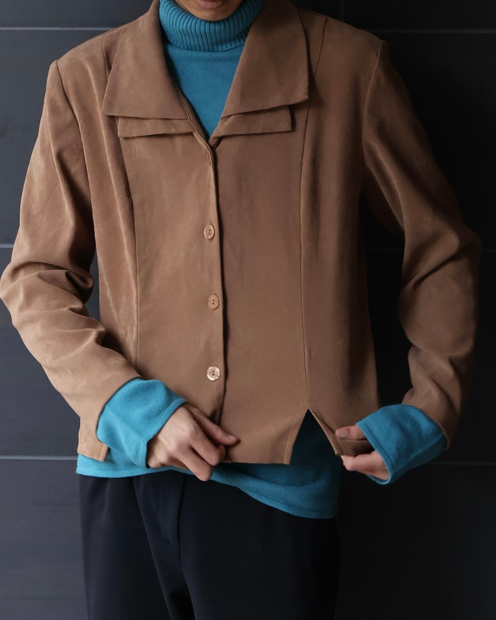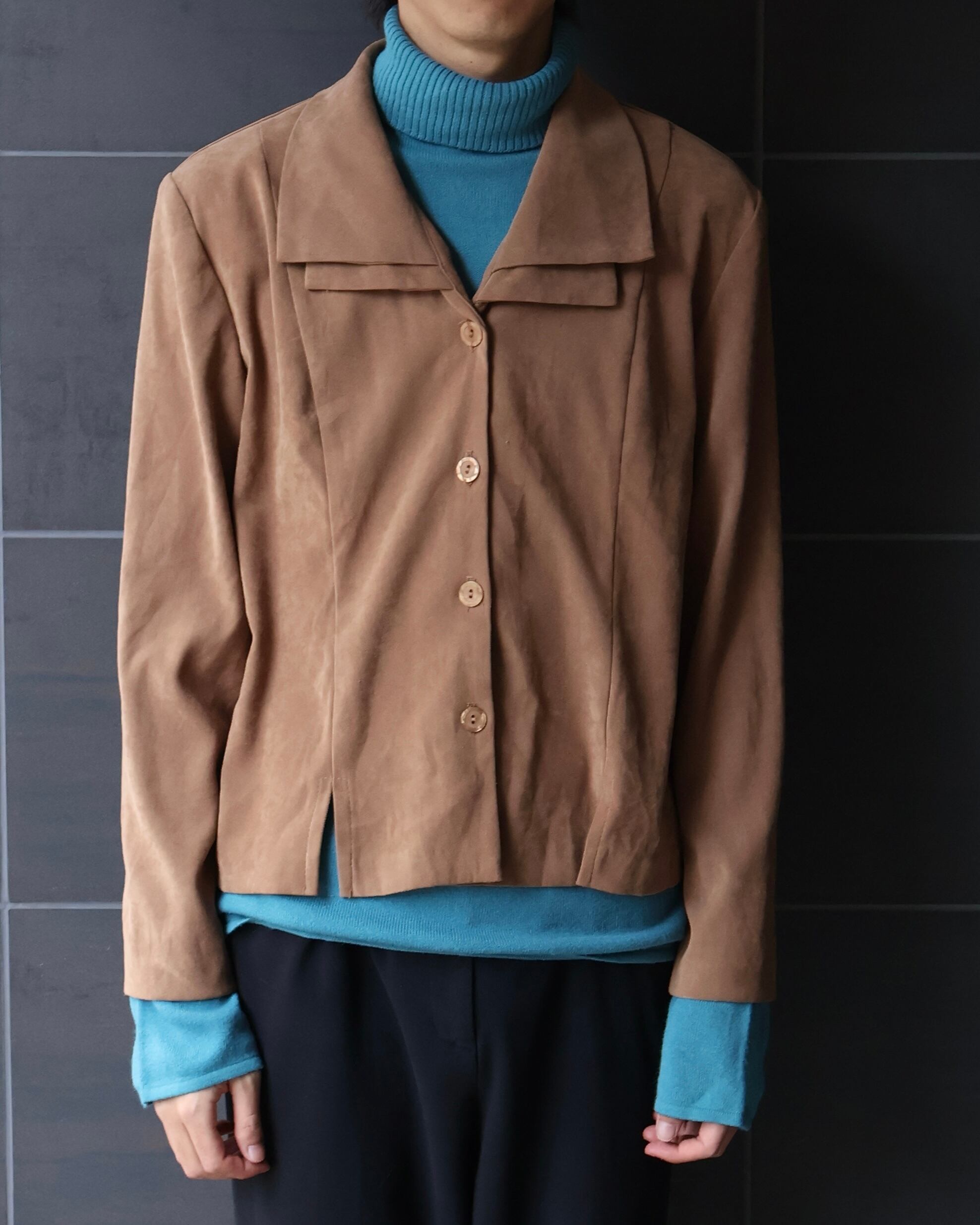 Suede-like collar layered blouson