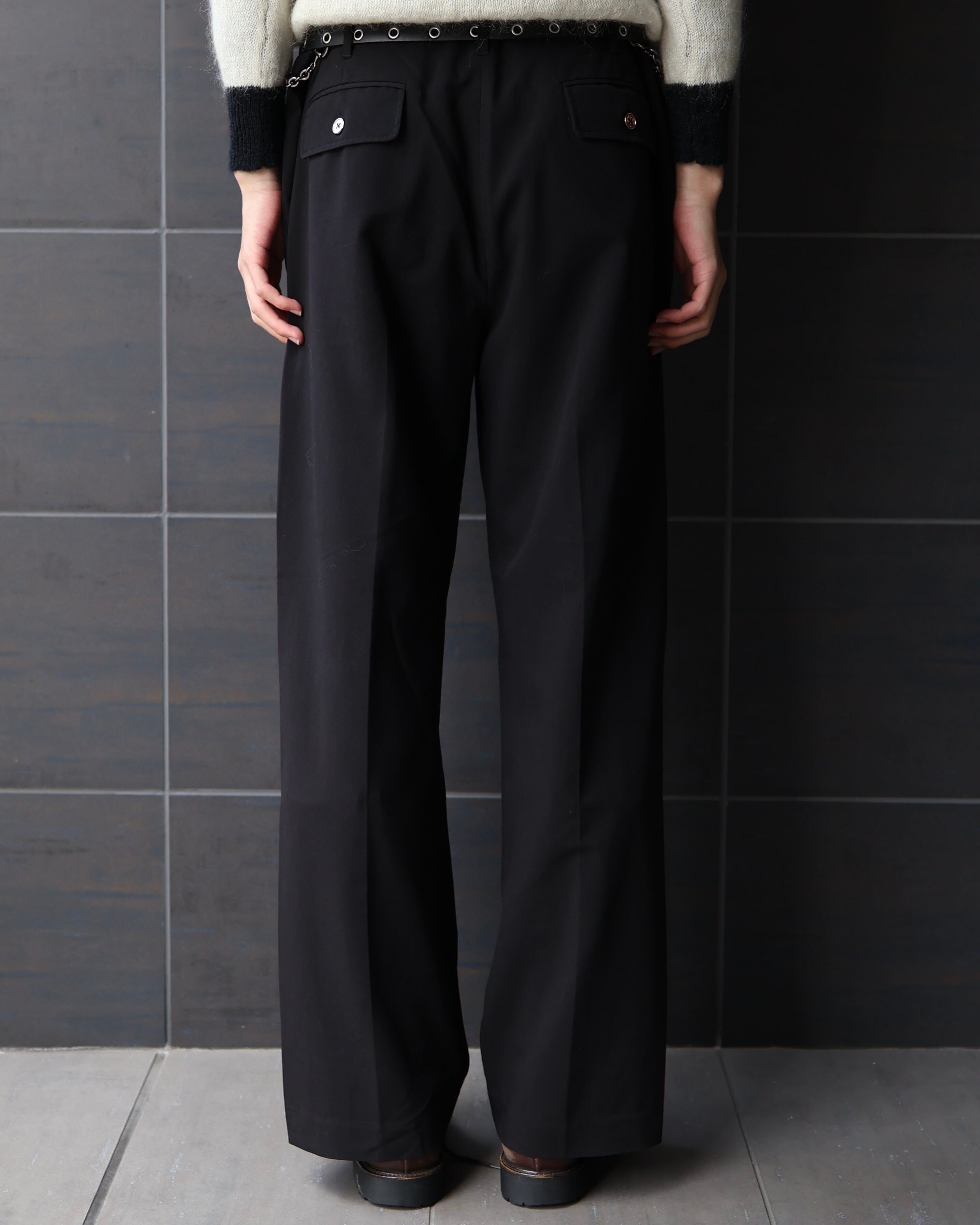 ウエストサイドのディティールが特徴的なストレートスラックス。