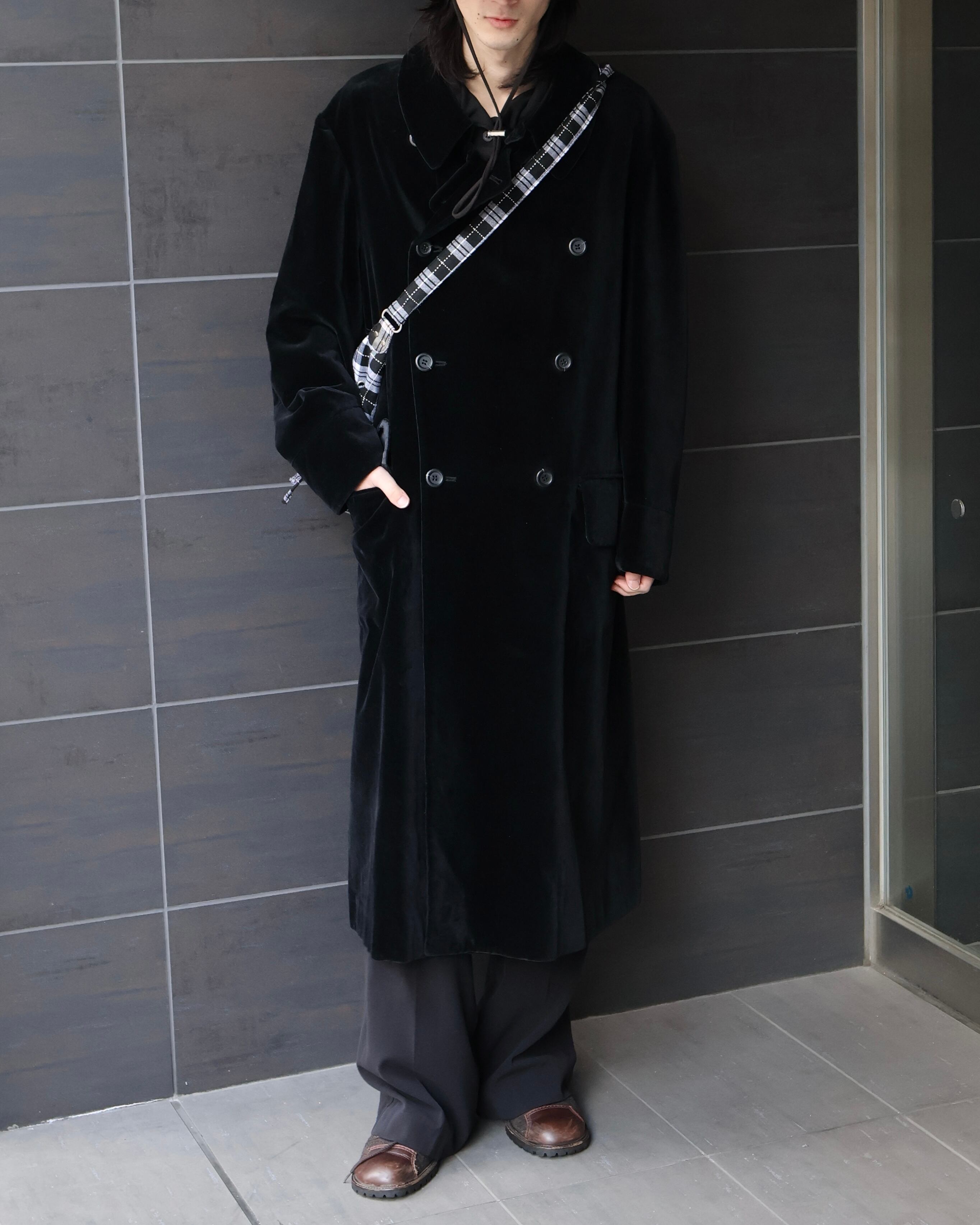 チンストラップで襟立ちもでき、ディテールに変化を咥えられるデザイン性、程よいゆるさで中にしっかり着込めるサイズ感。素材感でオールブラックでもスタイリングに変化を加えられる1着。