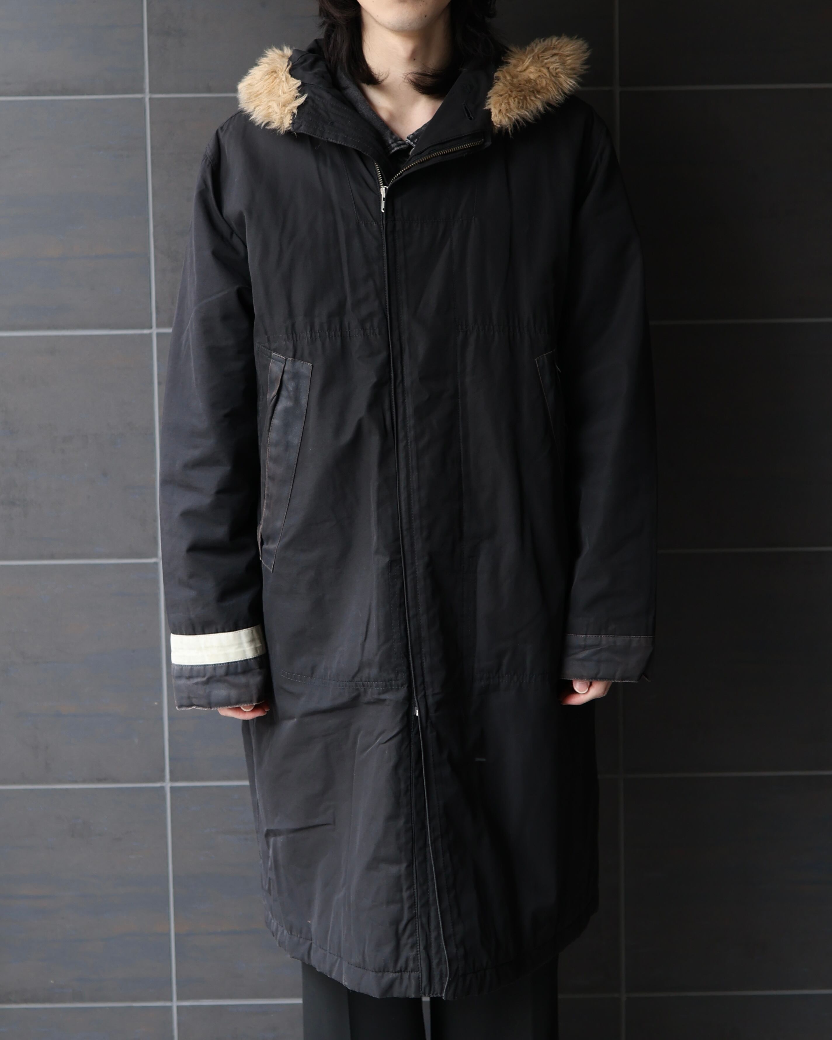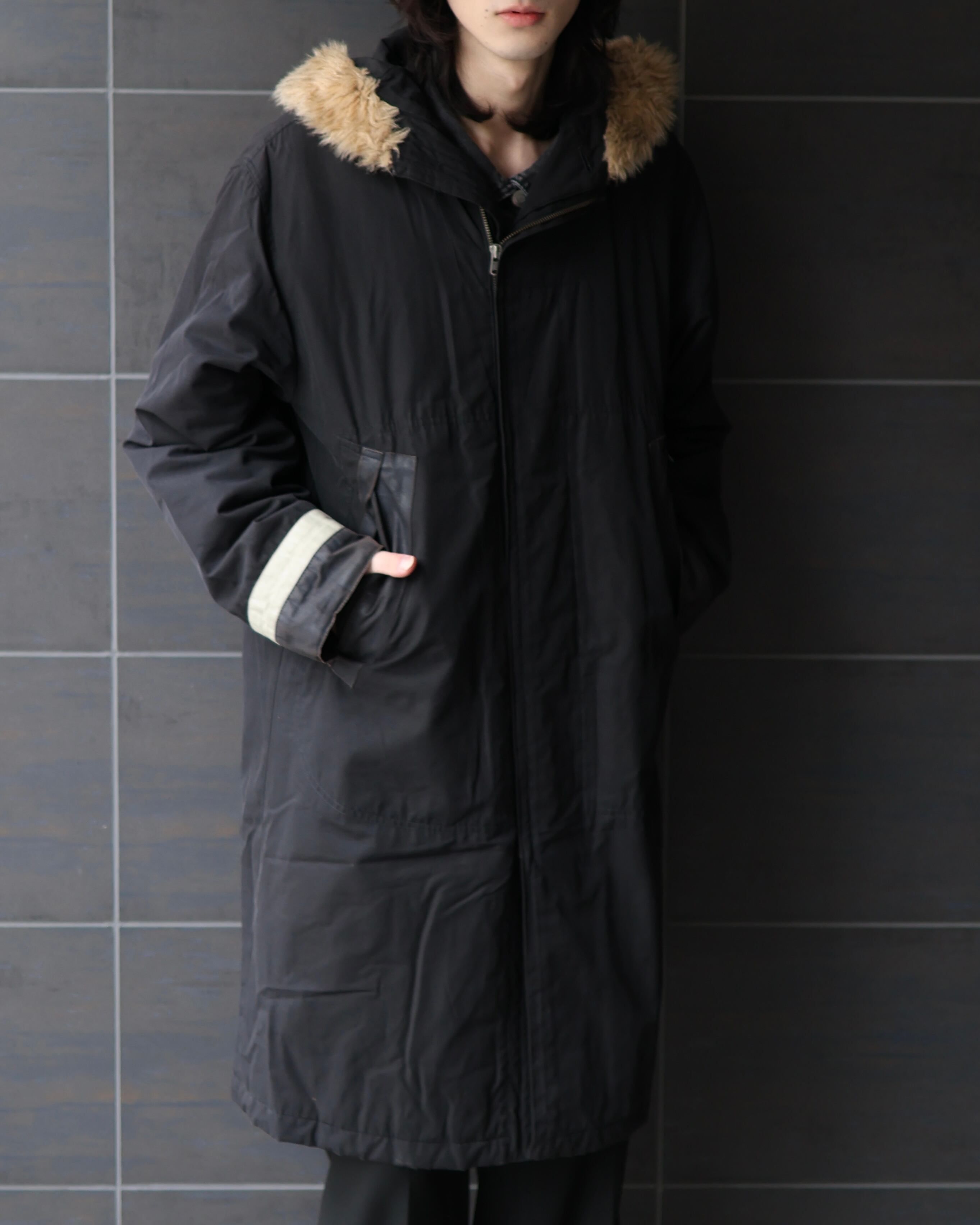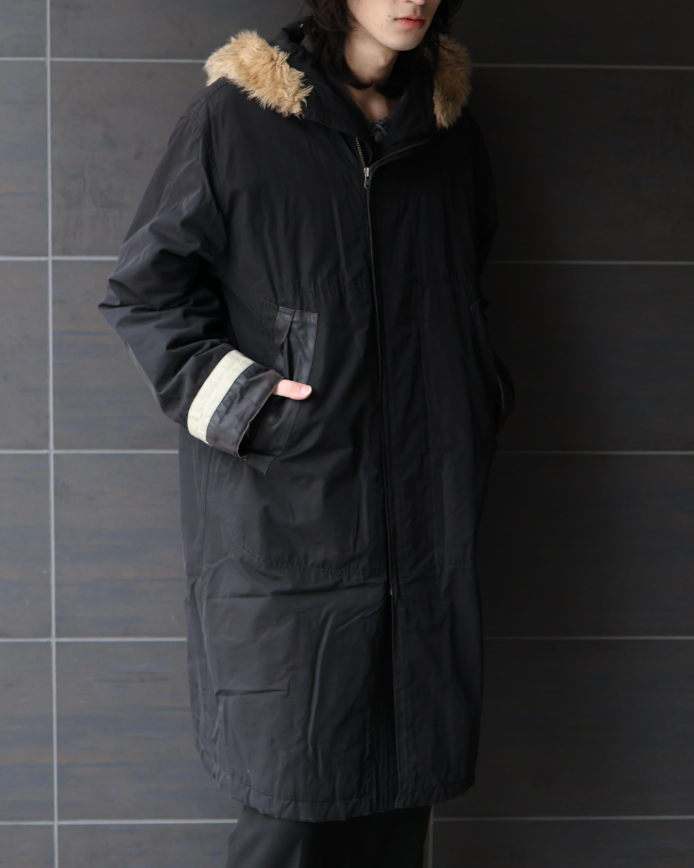フードにファーの施されたフェード感のあるコート。サイズ感、トレンド性、素材感、フードの大きさ◎。ファーが程よいアクセントになりトレンド性のあるアウターでモノトーンなデザインがどんなスタイルにもハマりやすい万能な1着。
