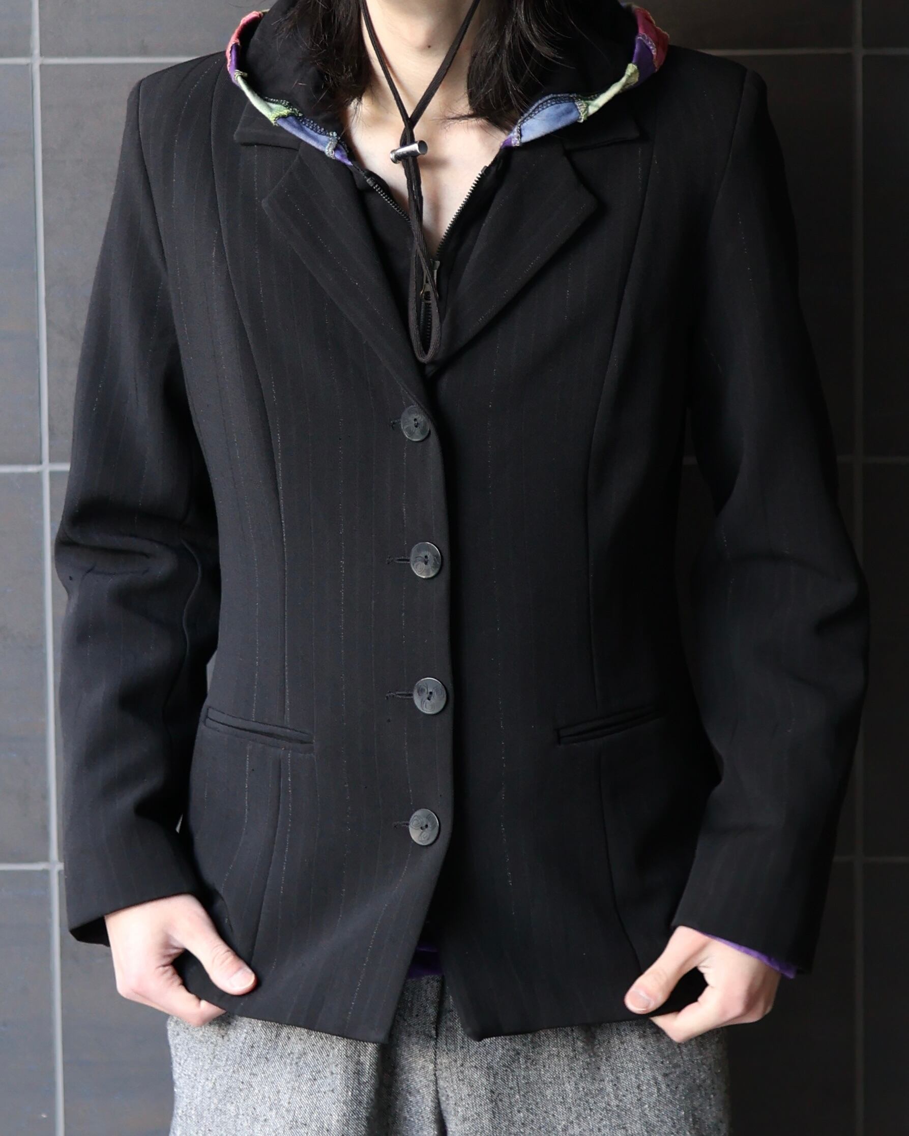 ラメによるストライプが特徴的なテーラードジャケット