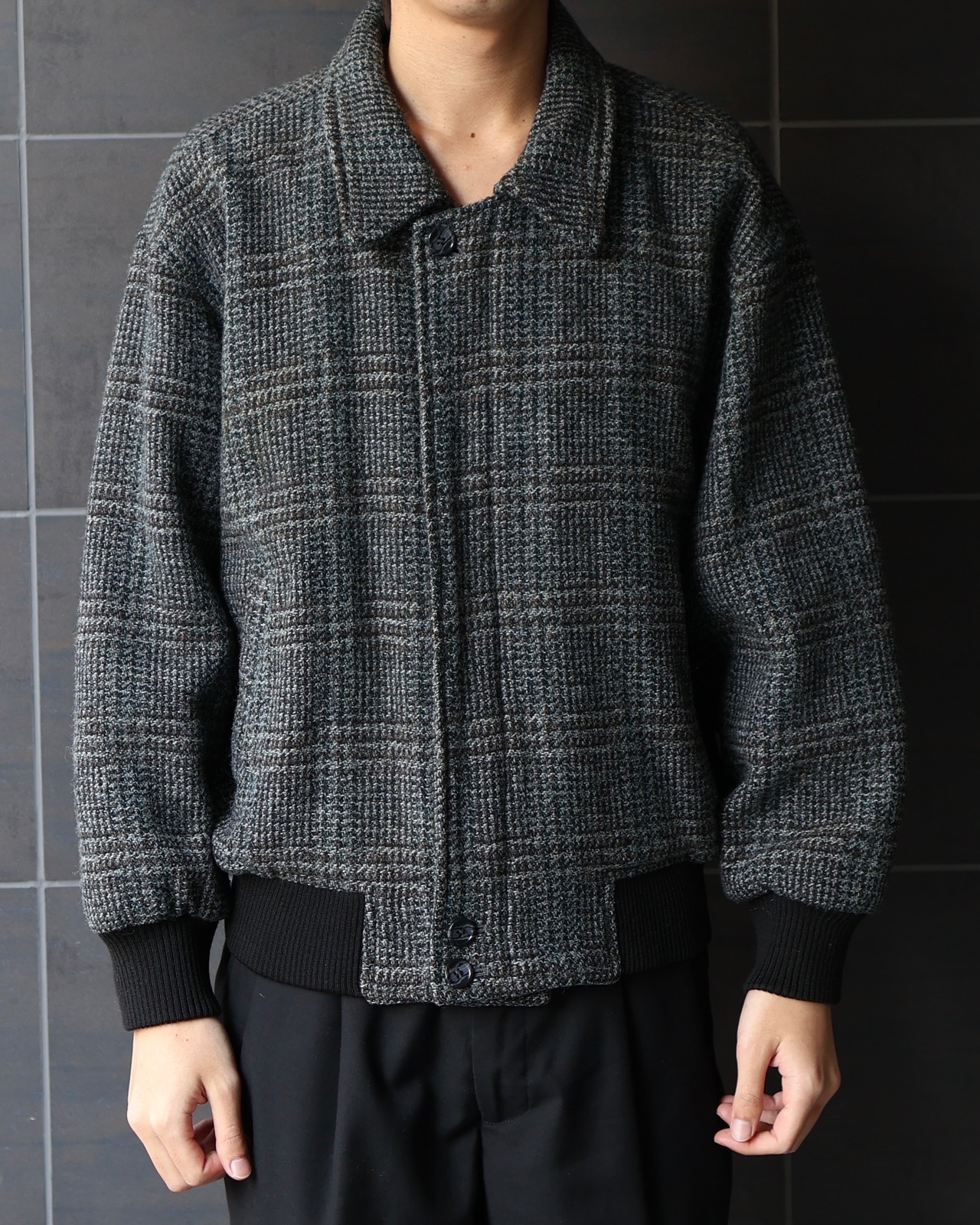 ツイードの比翼になっているジップアップブルゾン
