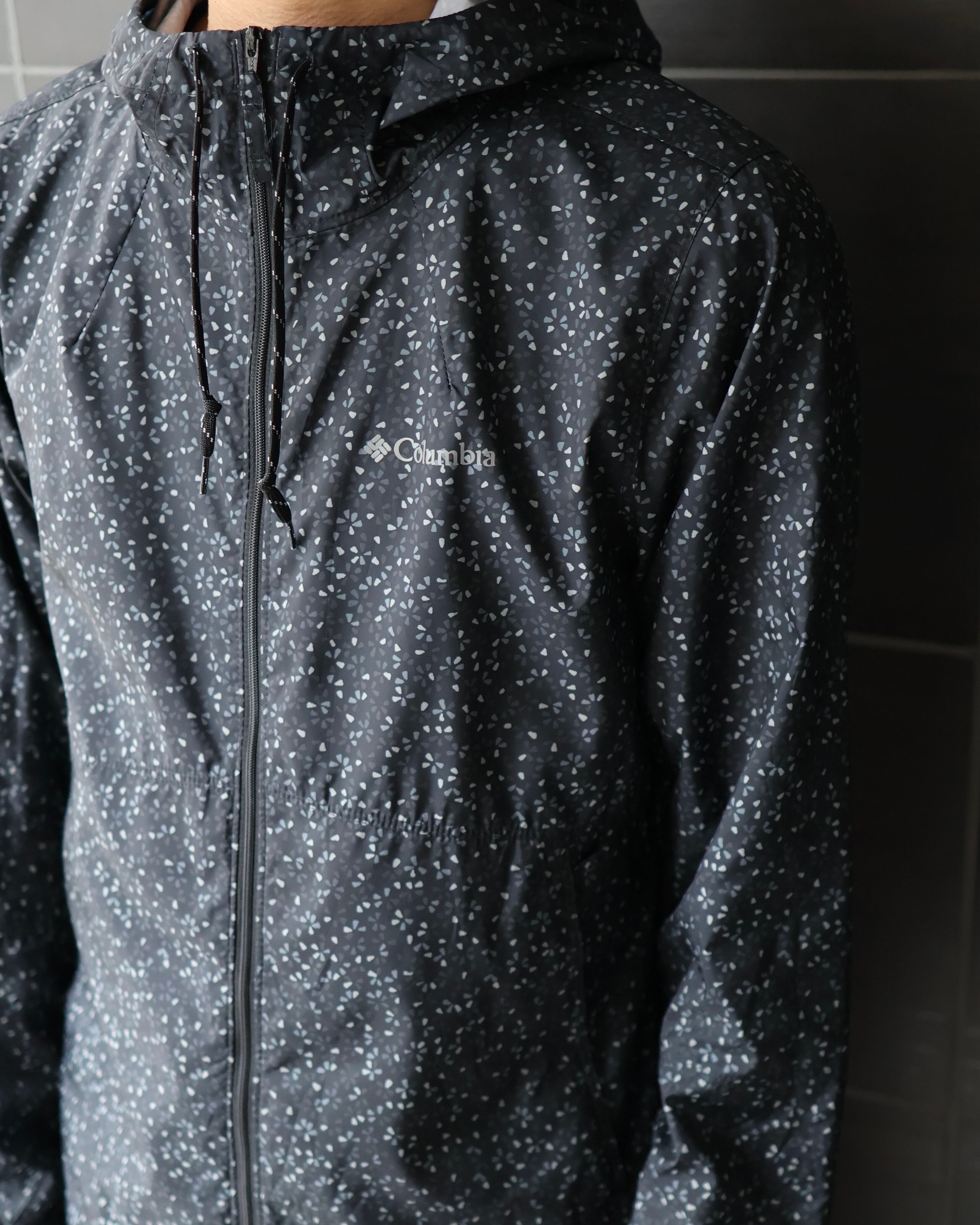 総柄のデザインが特徴的なナイロンのジップフーディー