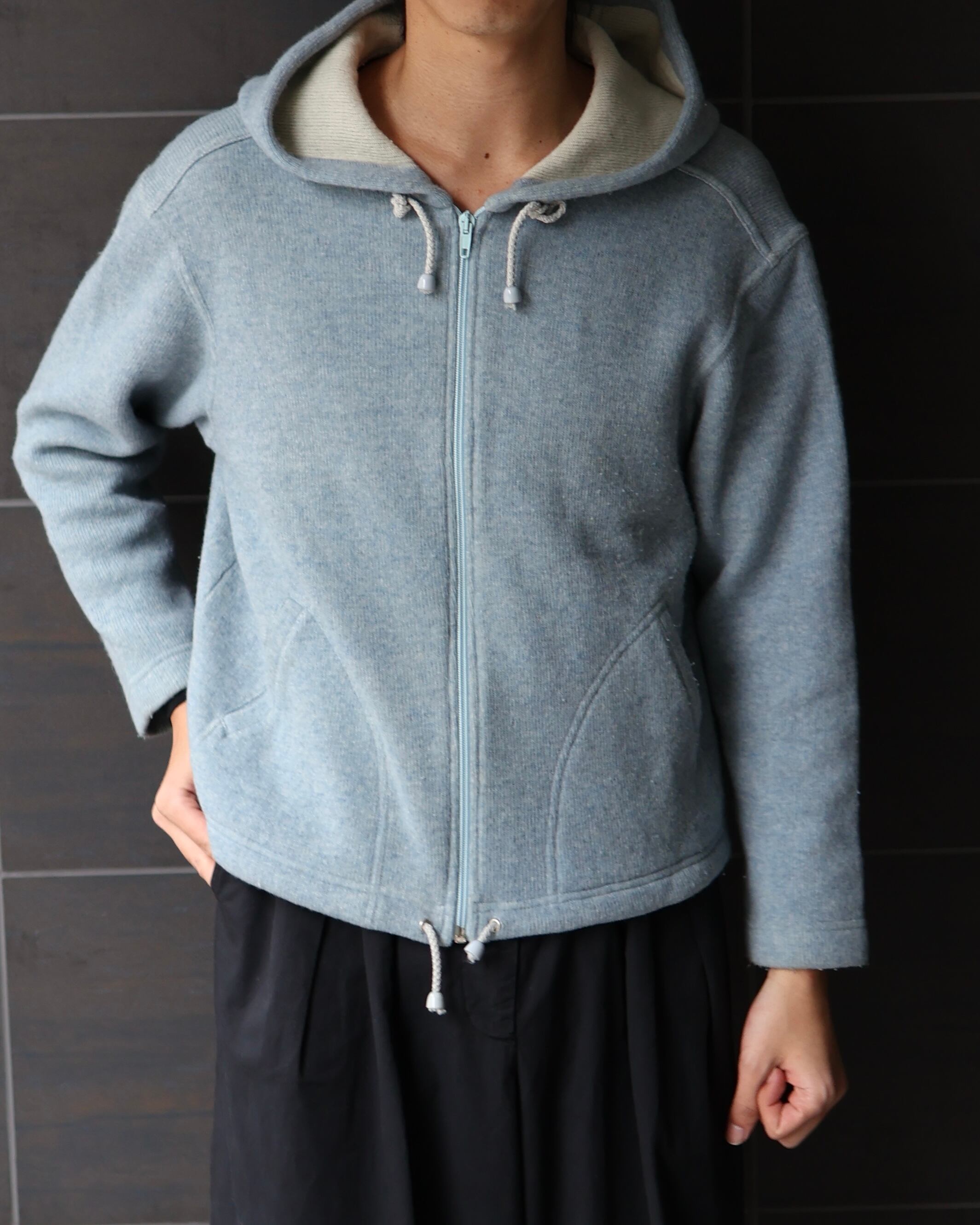 ウールによるしっかりとした素材感でカラーリングが良い。短丈のためスタイル良く着用することが可能でインナーとしても活用できるアイテム。