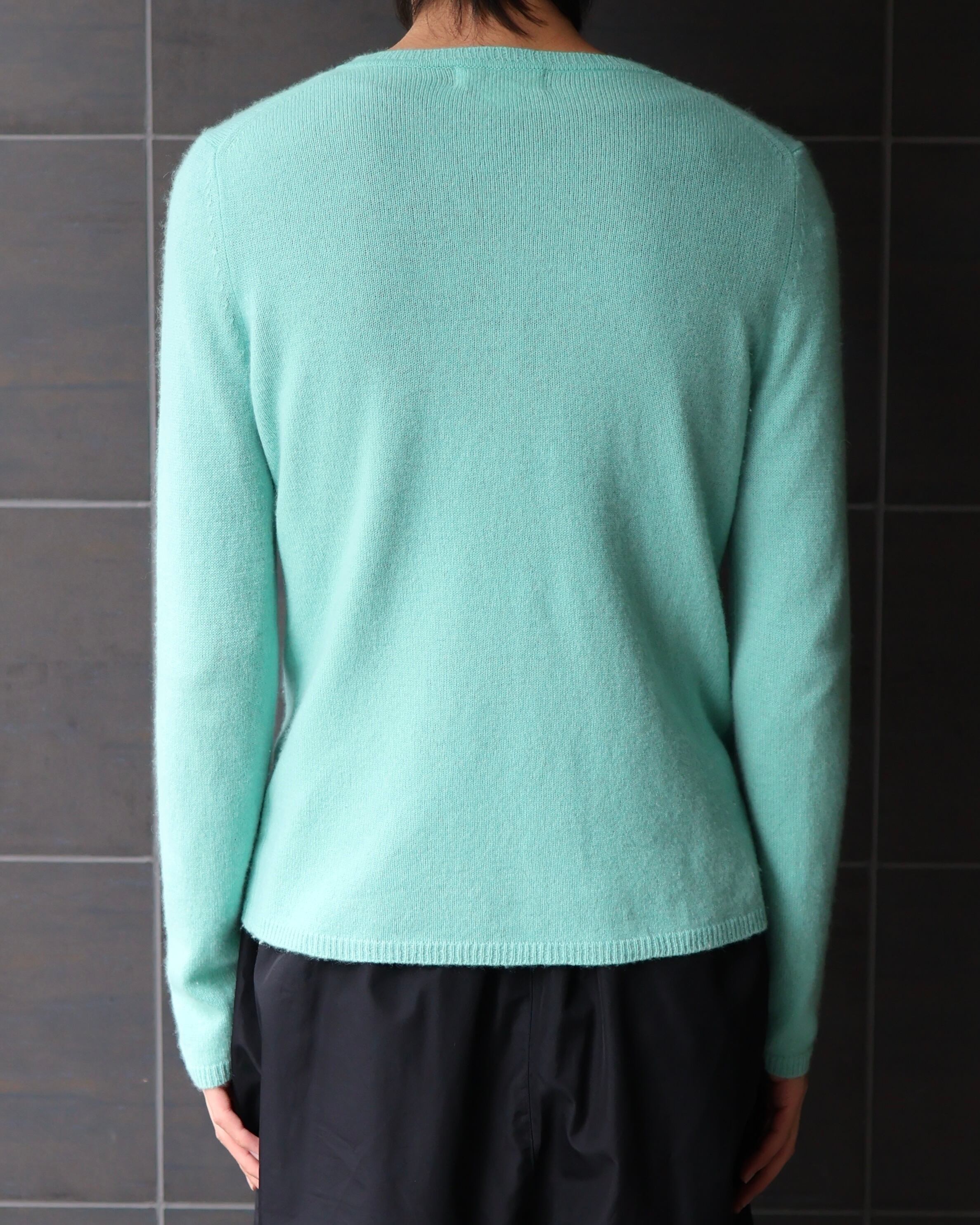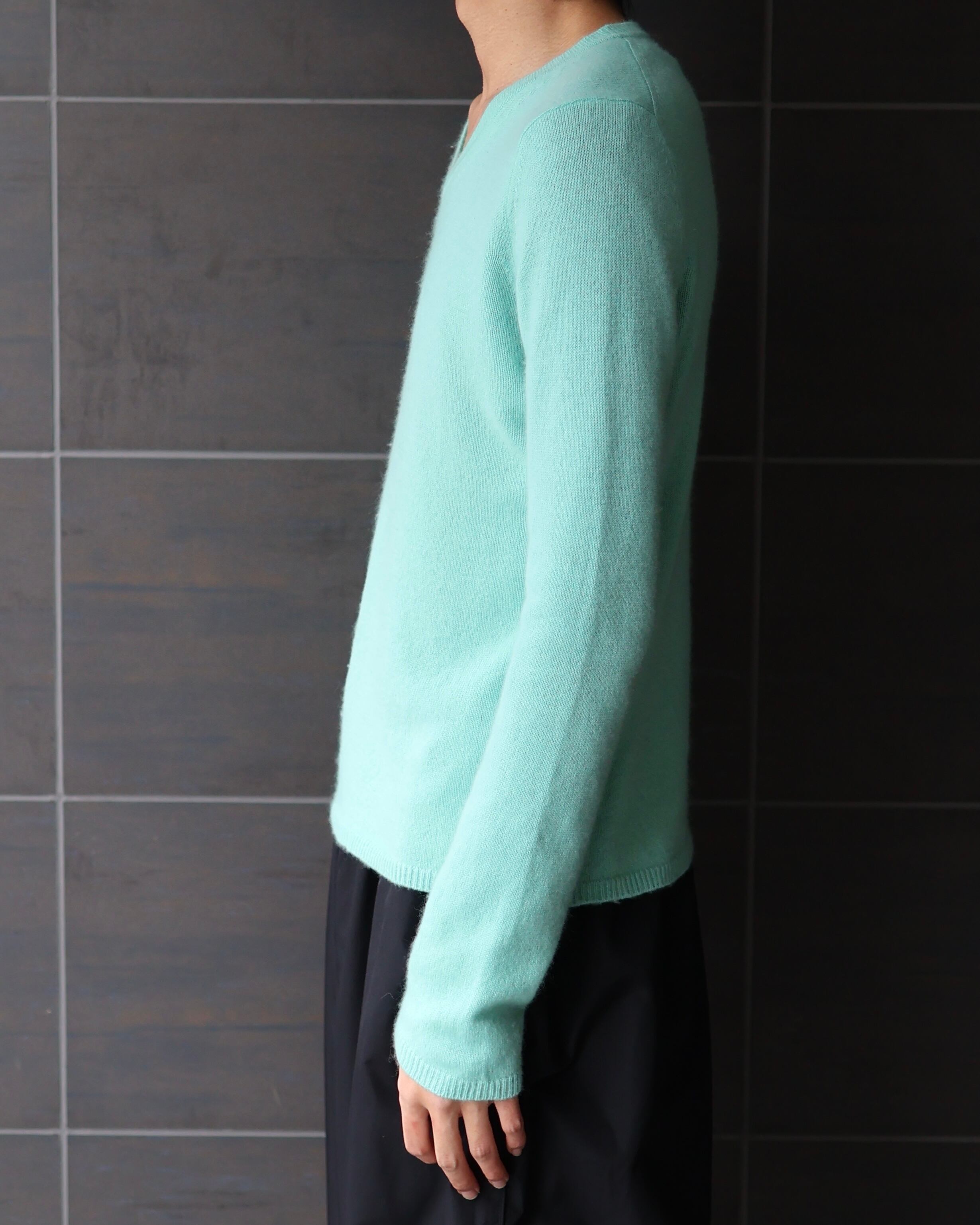 カシミヤによる優しい素材感で着心地が良い1着でカラーリングによる発色も良いためインナーとしても差し色として活用することができるアイテム。