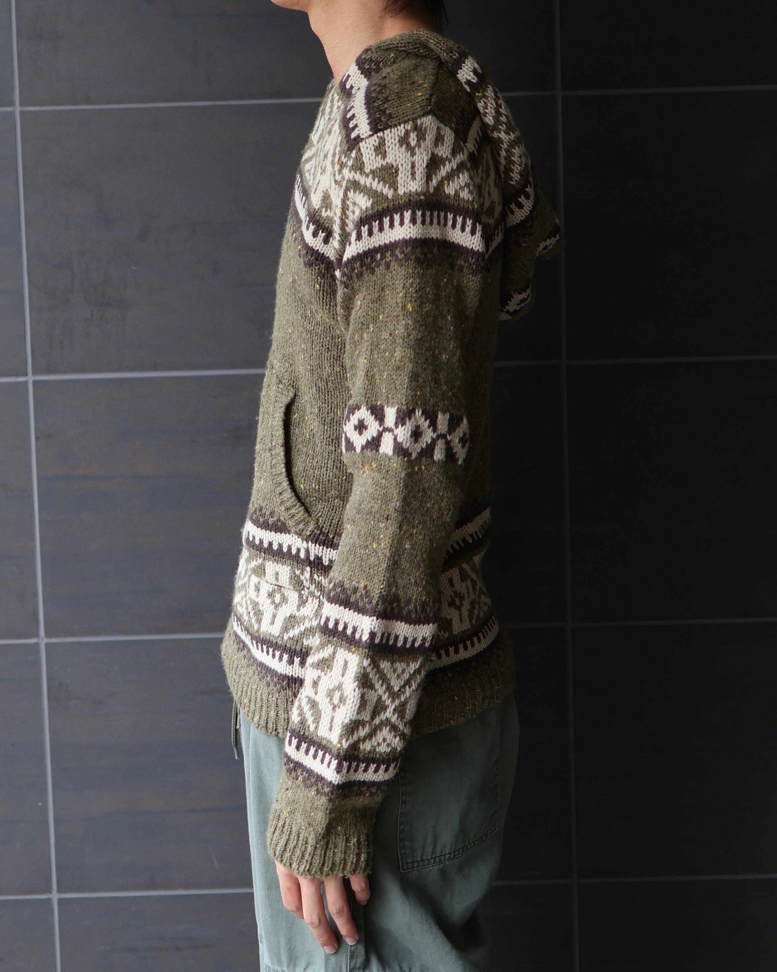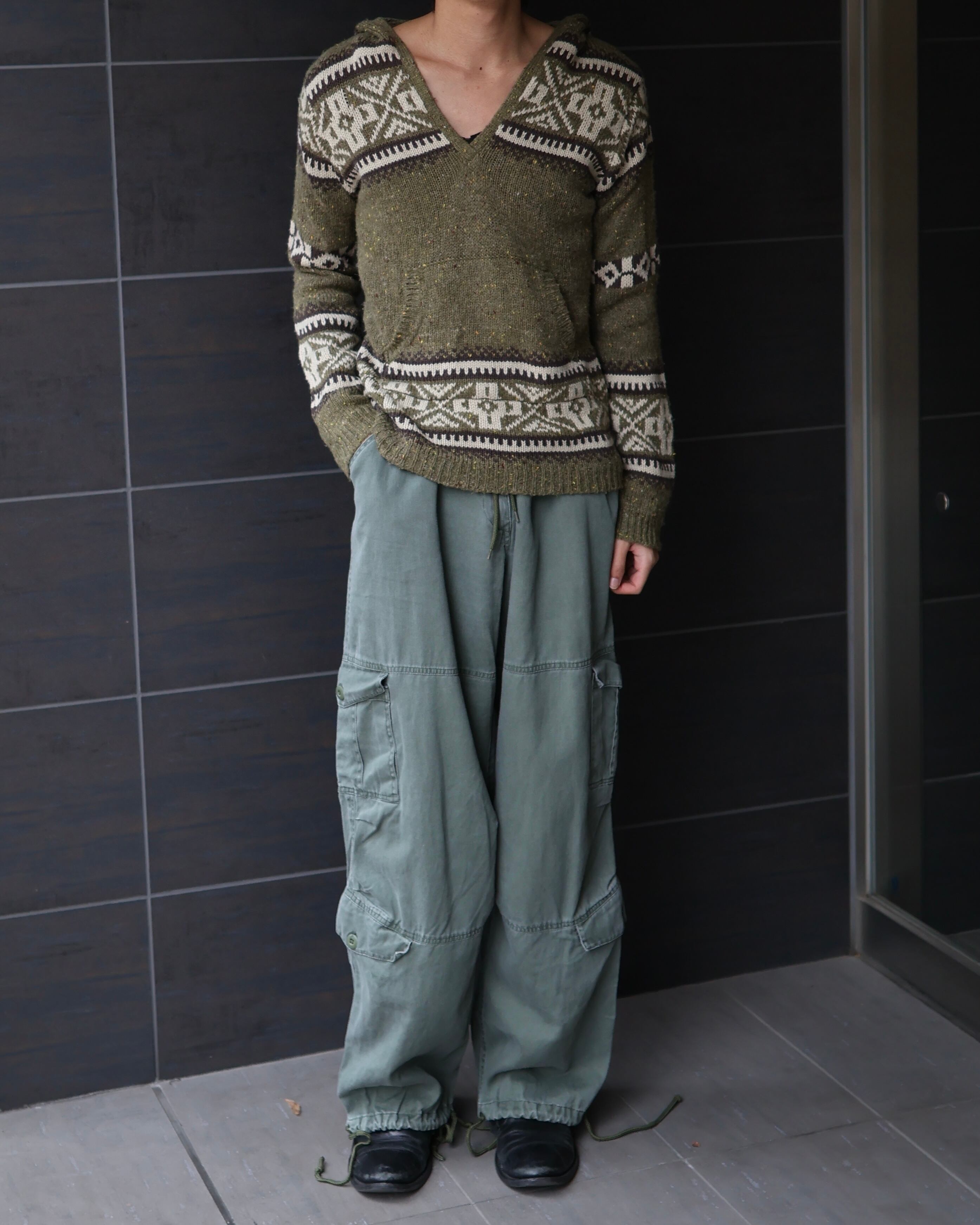 デザインが効いたvネックニットフーディー