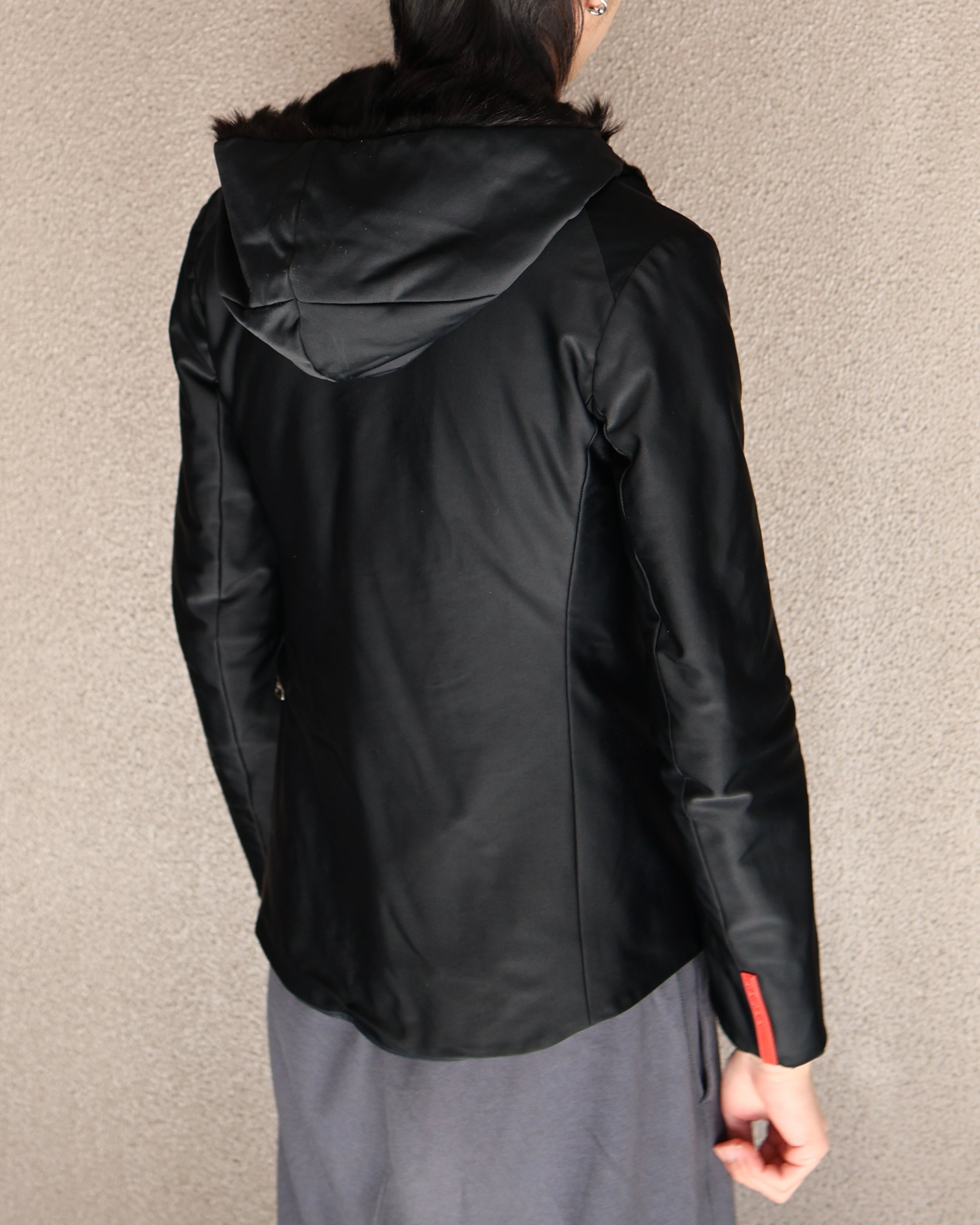 タイトなサイズ感のためボディのラインがはっきりと主張されスタイル良く着用することができるアイテム。フードのファーが特徴的でインナーとしても活用できる1着