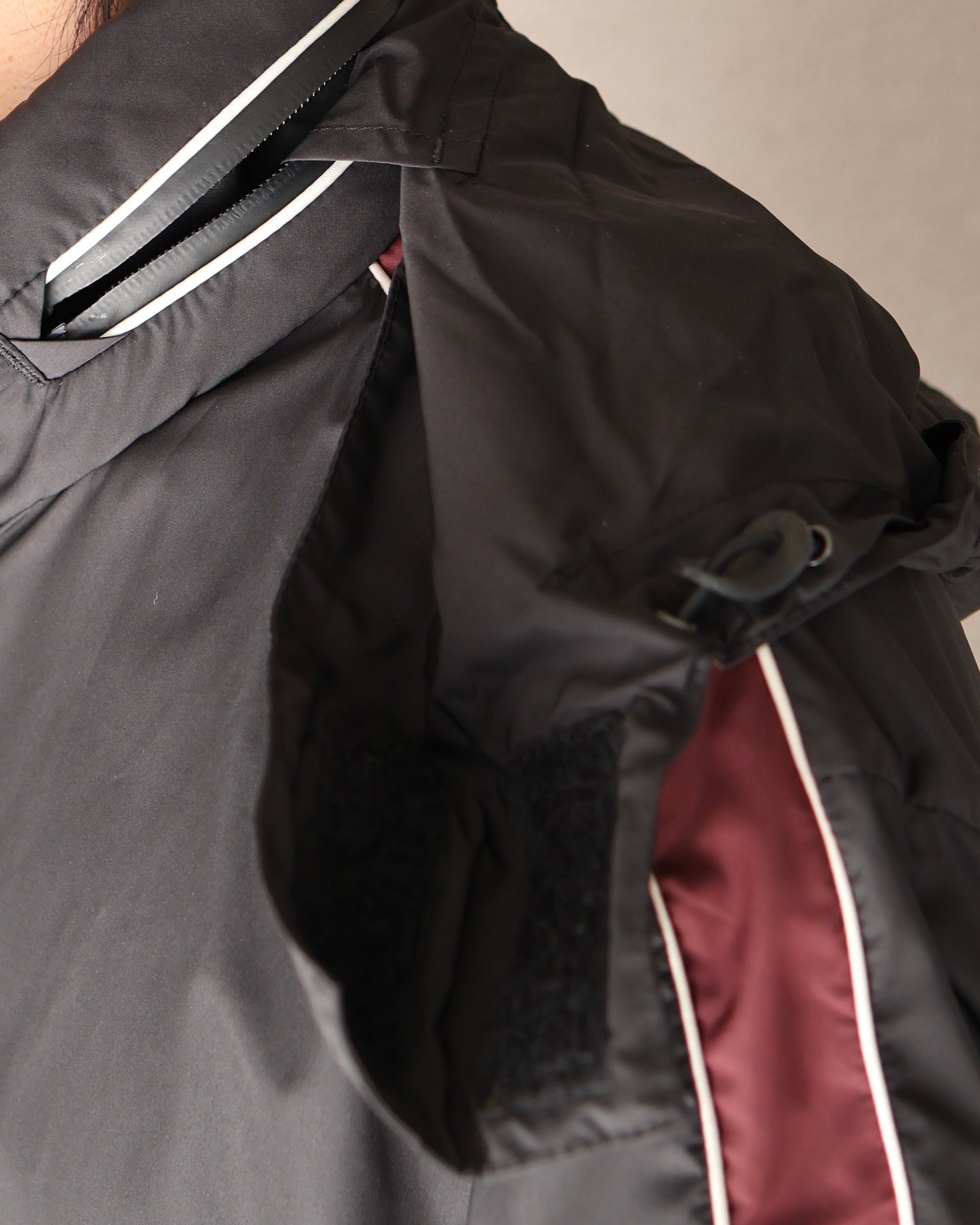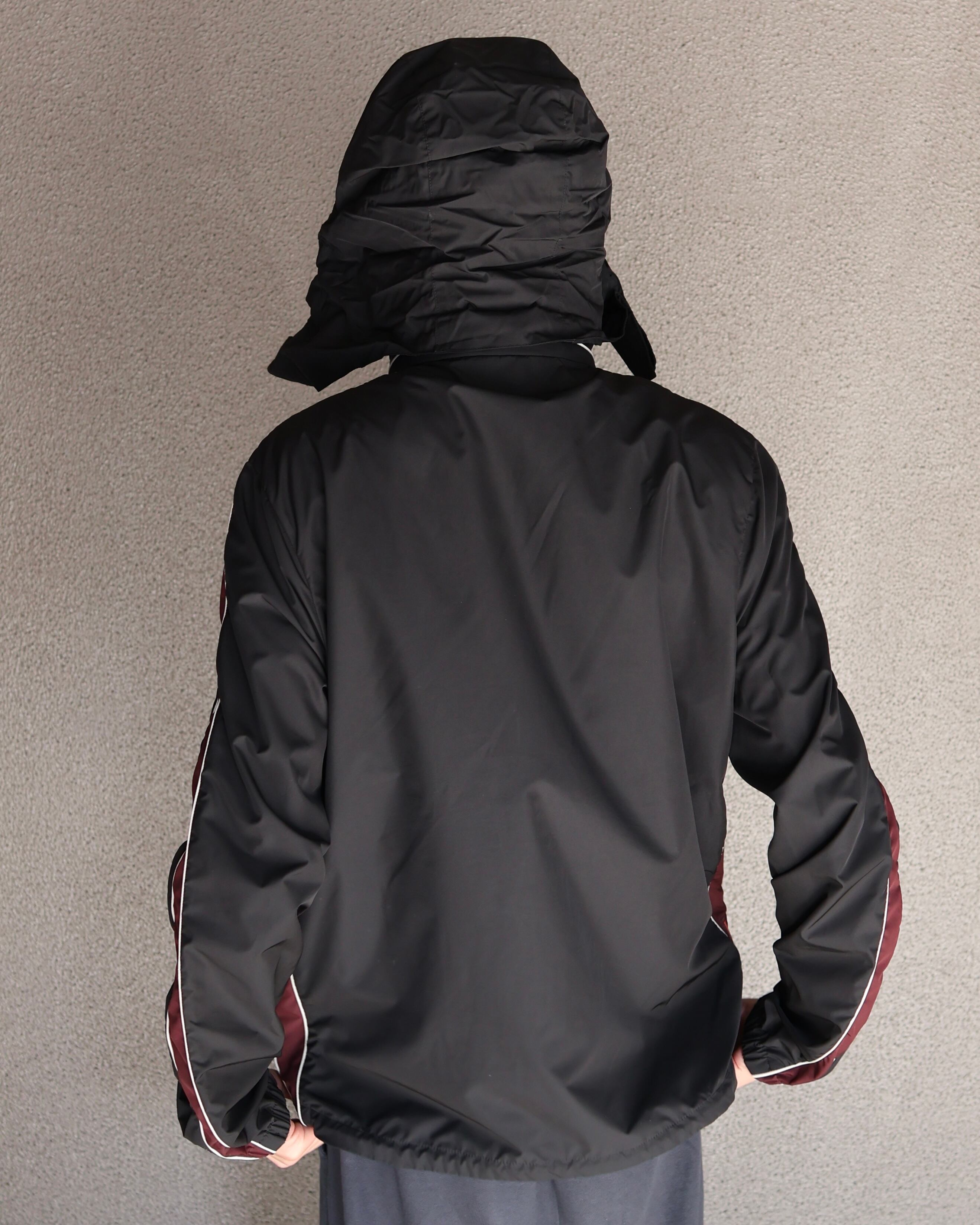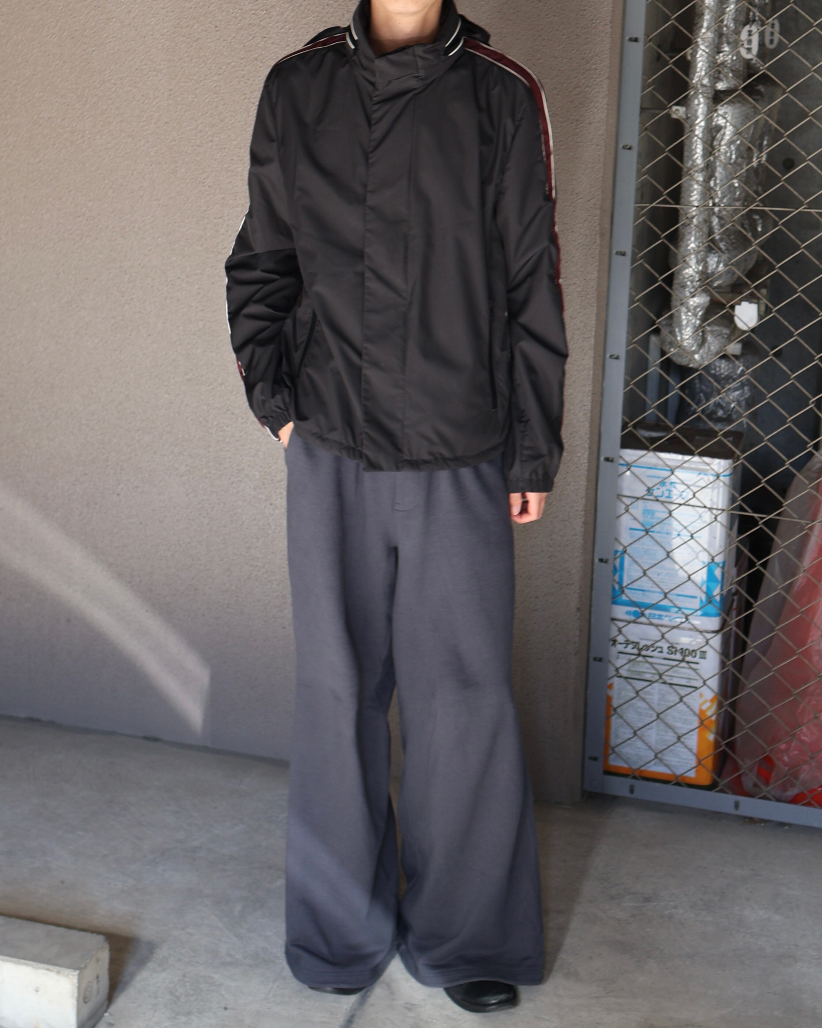 PRADAのサイドのラインによるデザインが特徴的なボタンによる比翼付きナイロンジャケット
