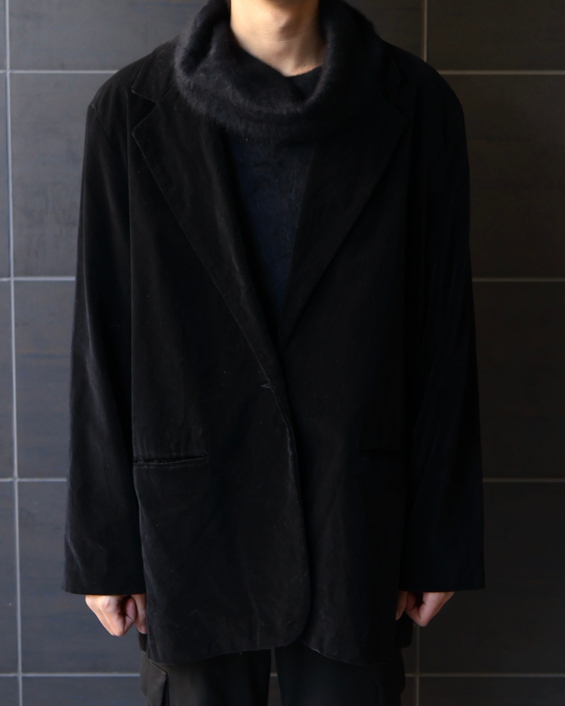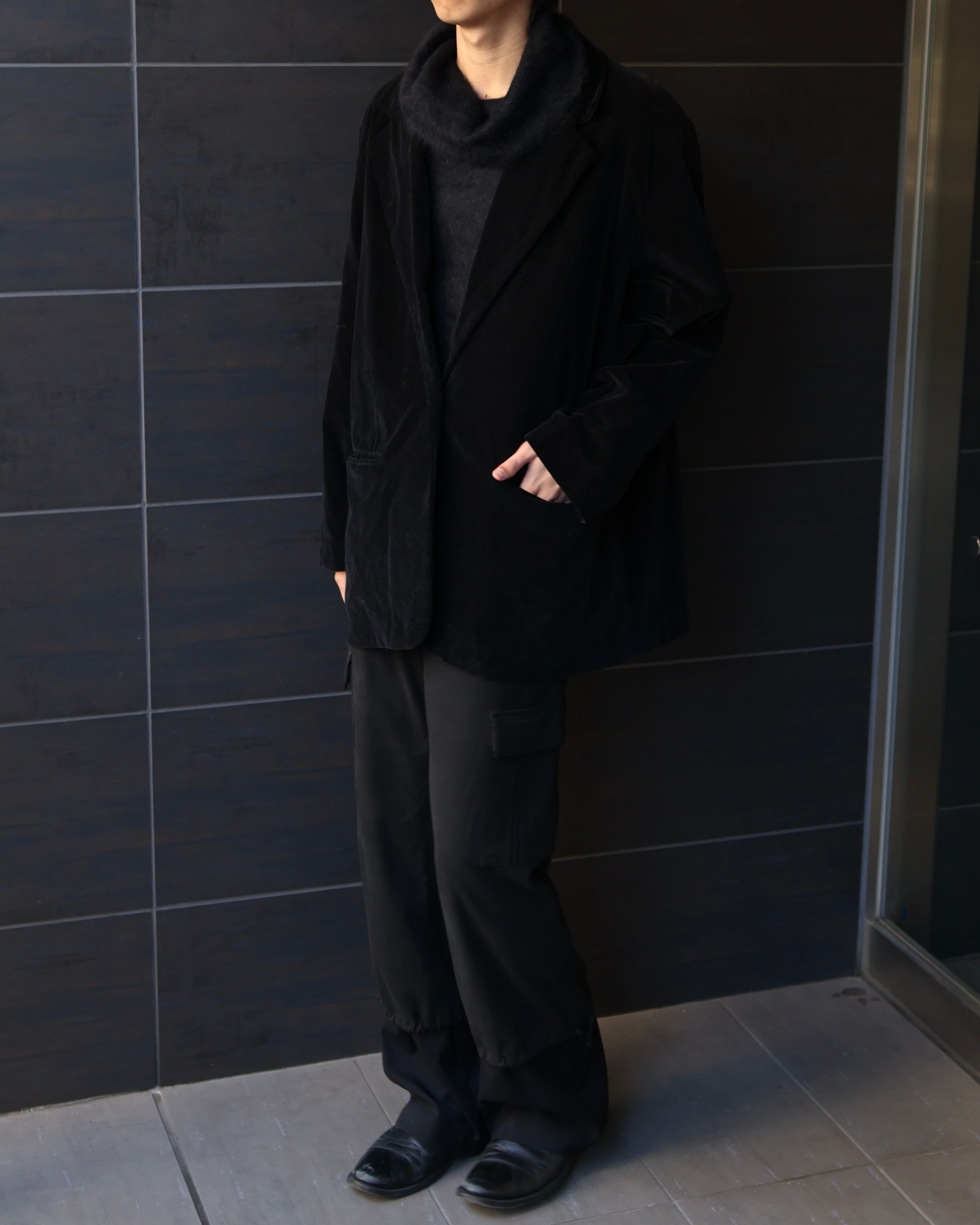 ゆったりとしたサイズ感で異なる素材感のためモードに着こなした時もスタイリングにまとまりが出やすいアイテム。テーラードだがフォーマルな印象を与えすぎない汎用性の高い1着