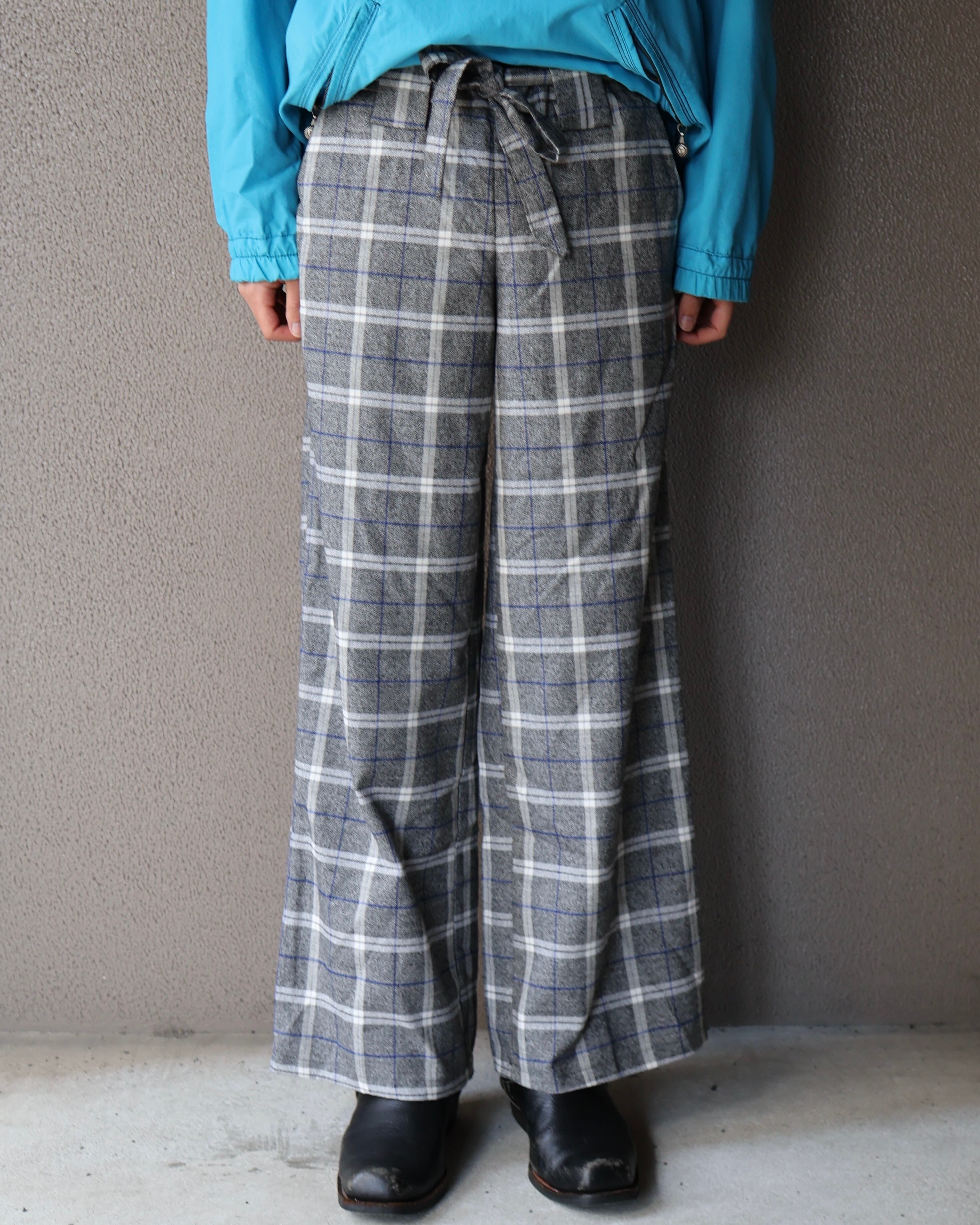 ウエスト部分が紐になっているチェックデザインワイドパンツ