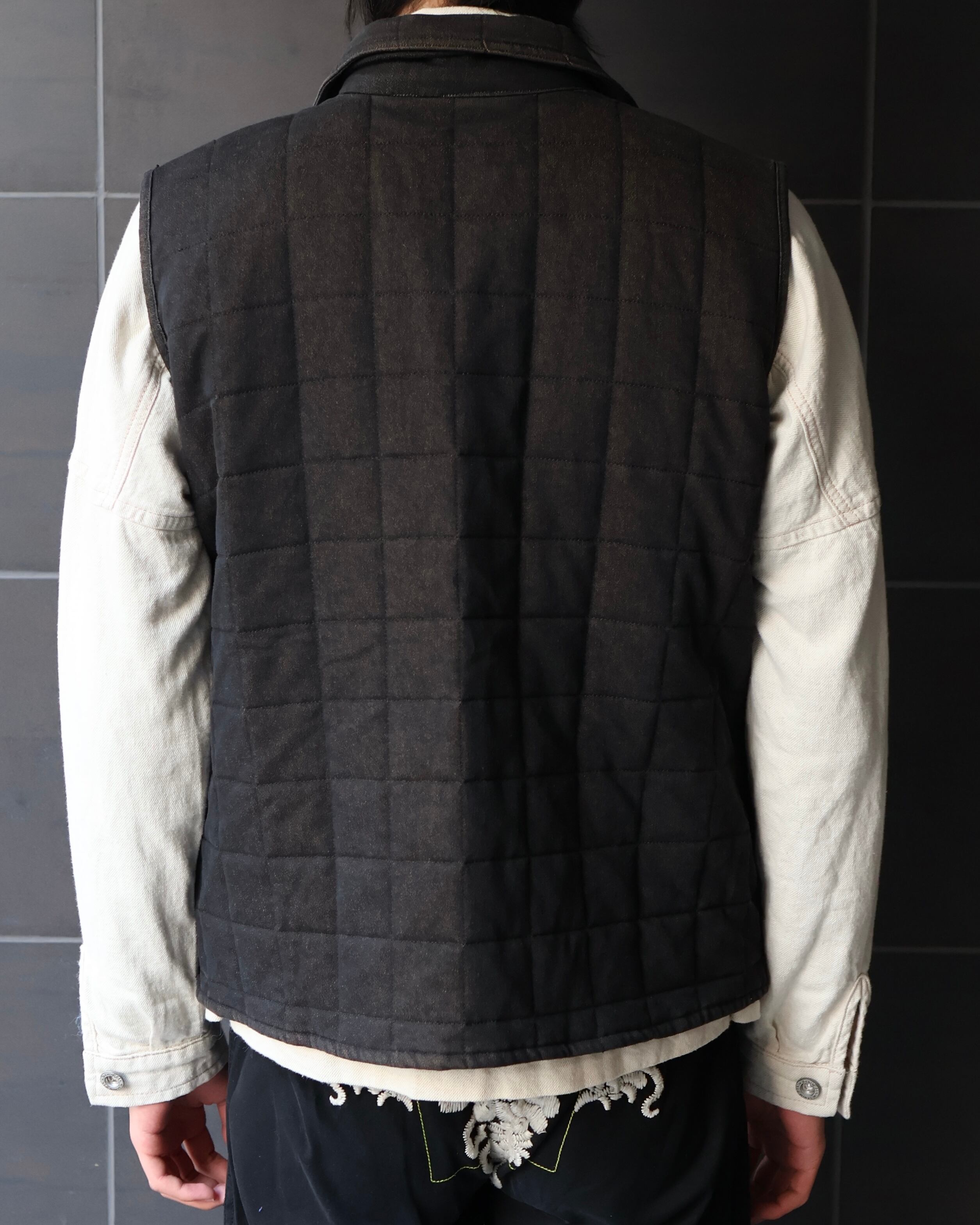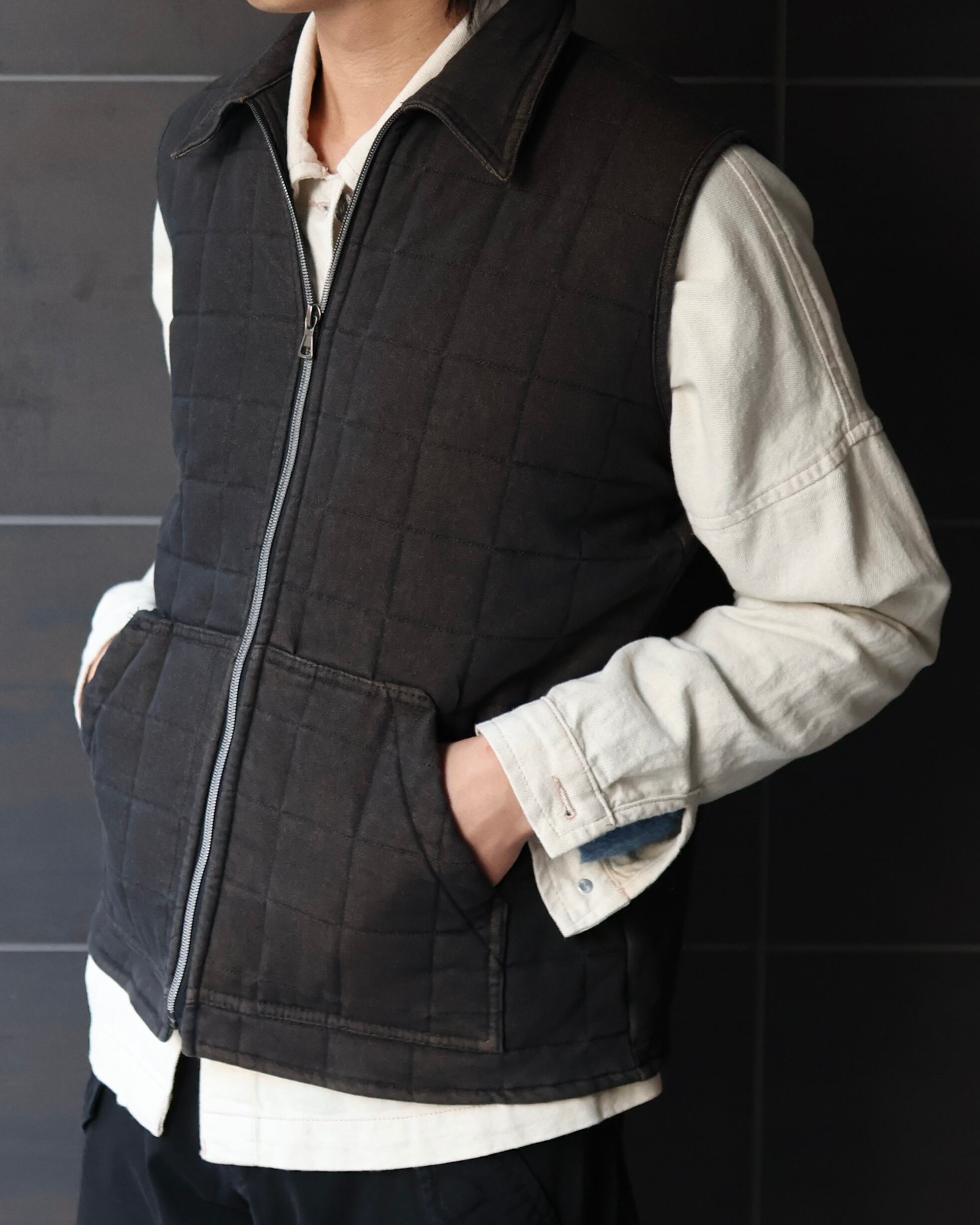 素材感、デザイン性が良く春先まで着用することができるベスト。さまざまなスタイリングに落とし込むことが可能で多くの場面で活躍する1着