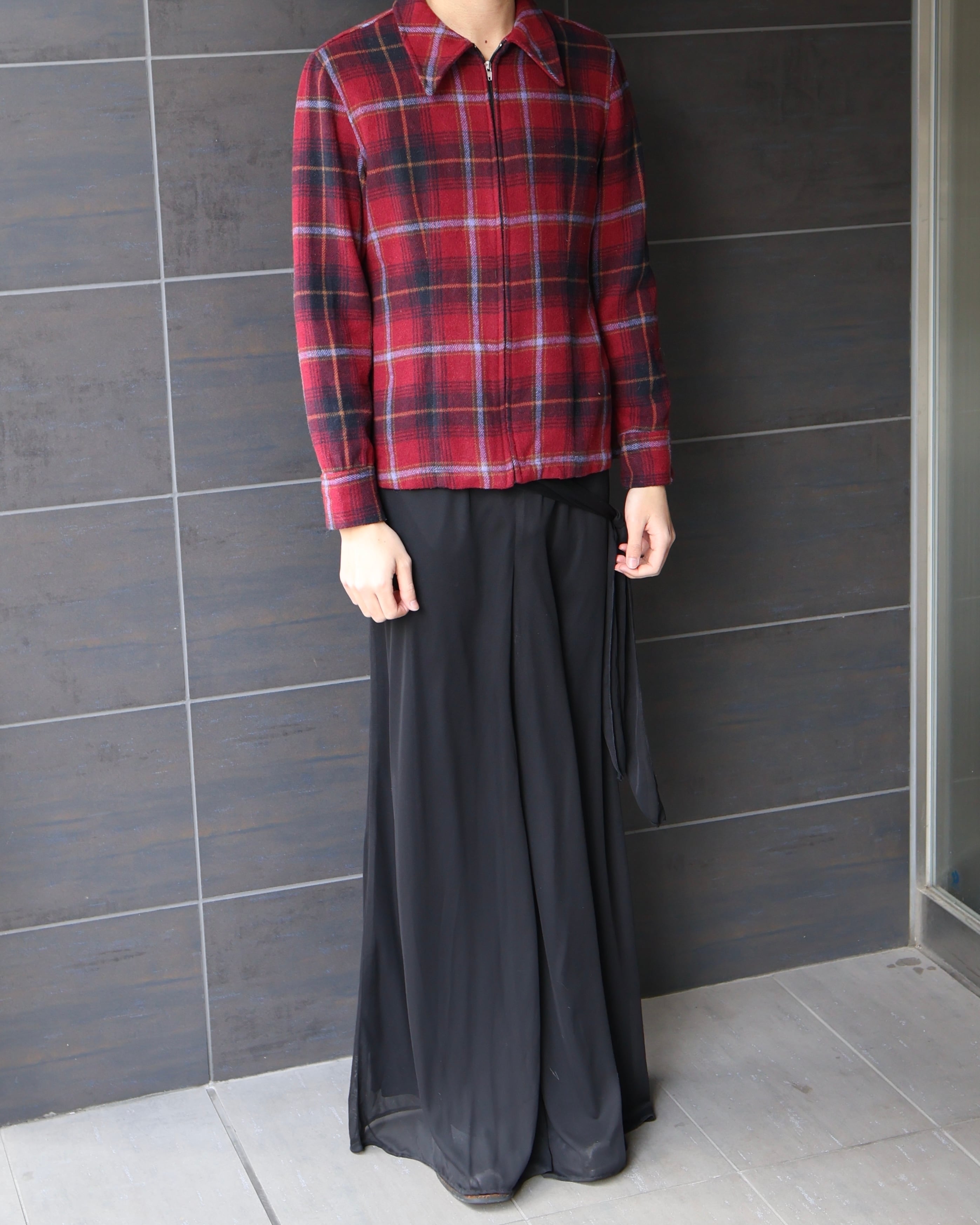 Check zip-up blouson