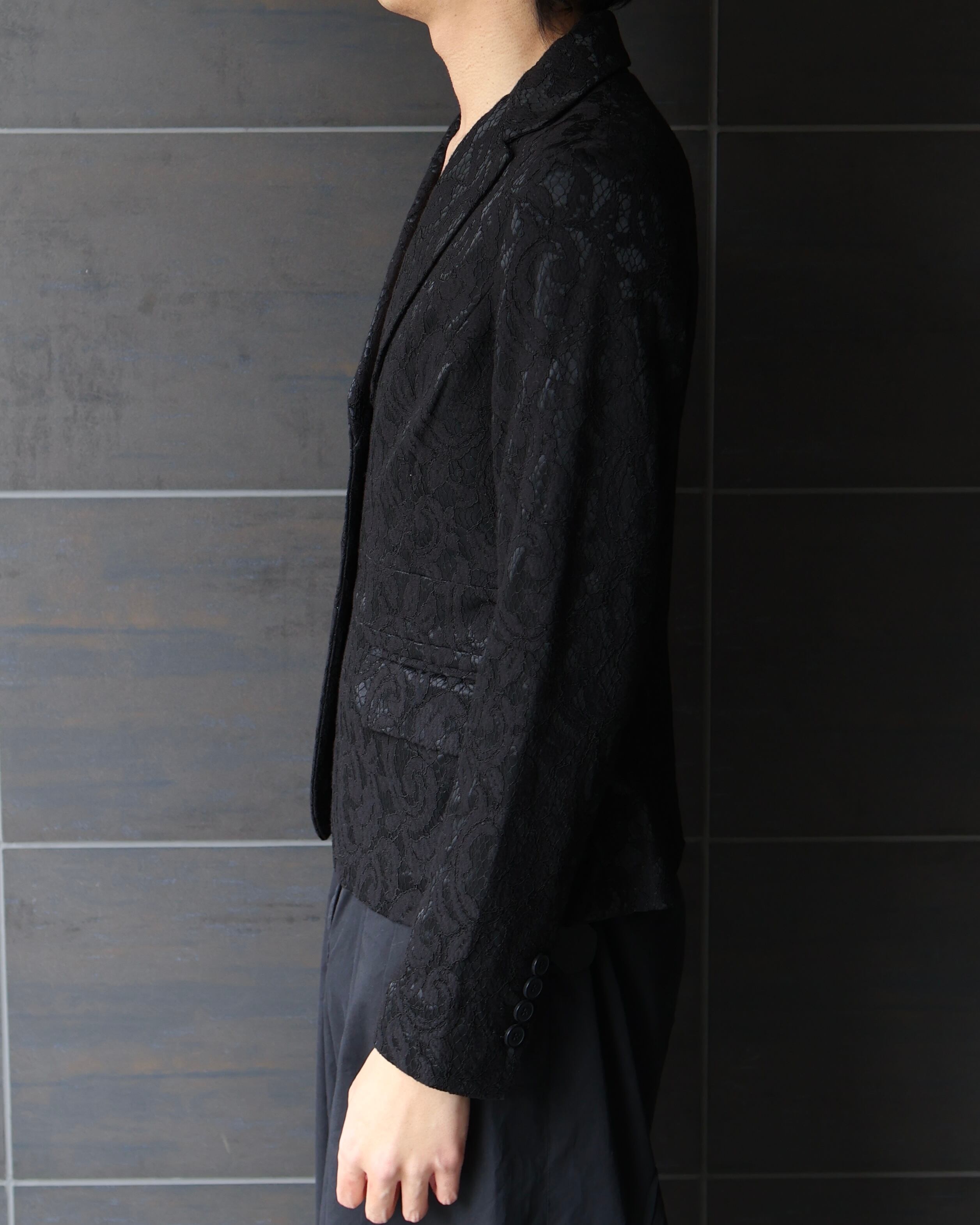 レースデザインによるディティールが特徴的なシングルテーラードジャケット